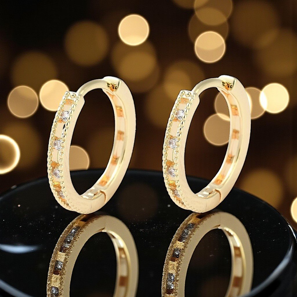 Objavte kúzlo nadčasovej elegancie s našimi pozlátenými náušnicami. Tieto drobné, no výrazné krúžky sú navrhnuté tak, aby dodali iskru každému vášmu dňu a jemne podčiarkli vašu krásu.