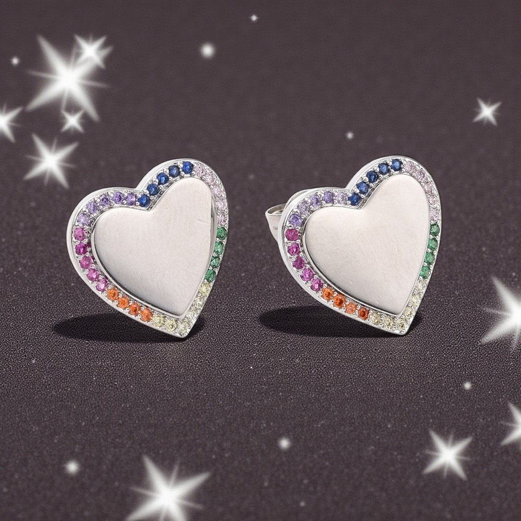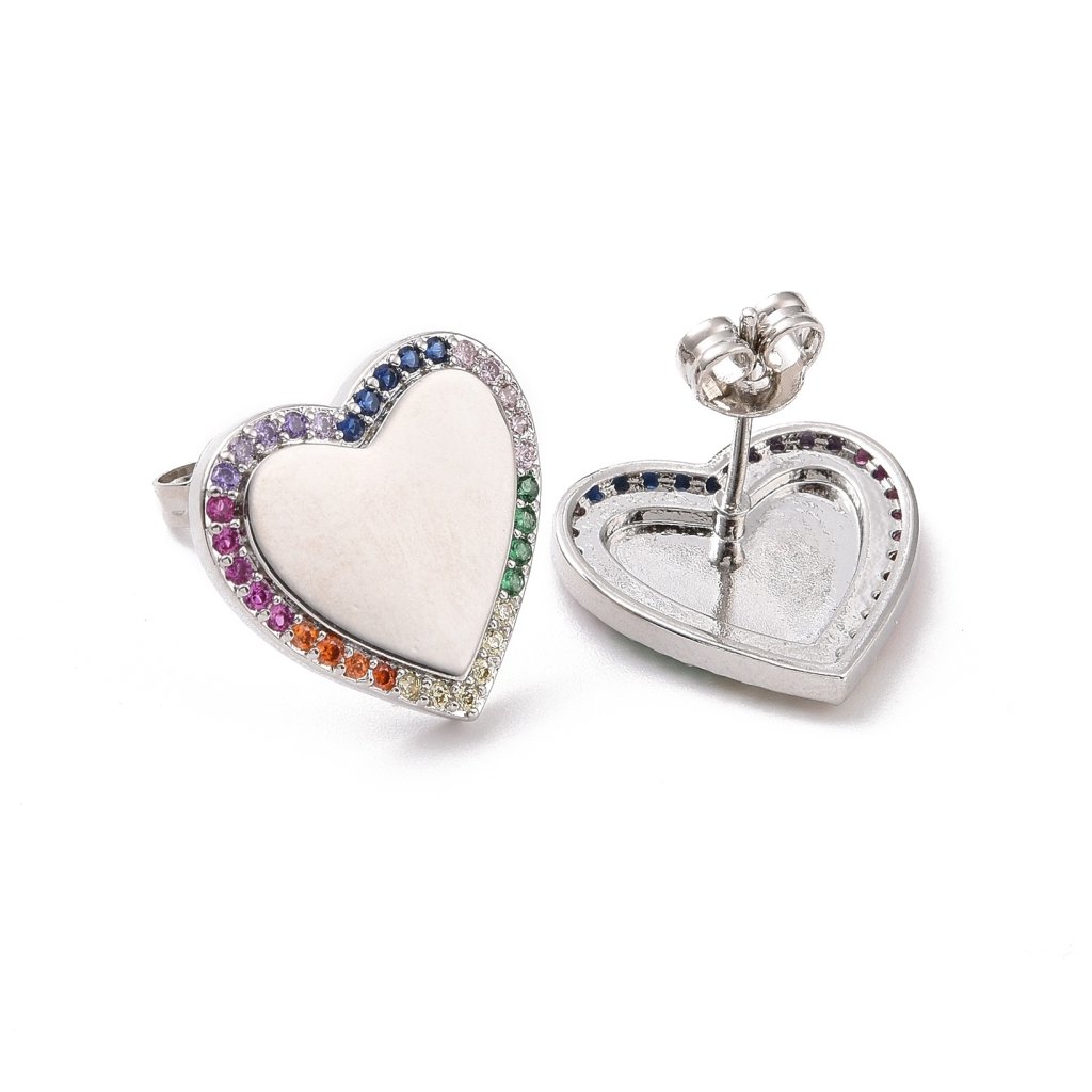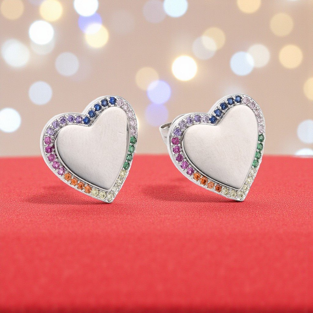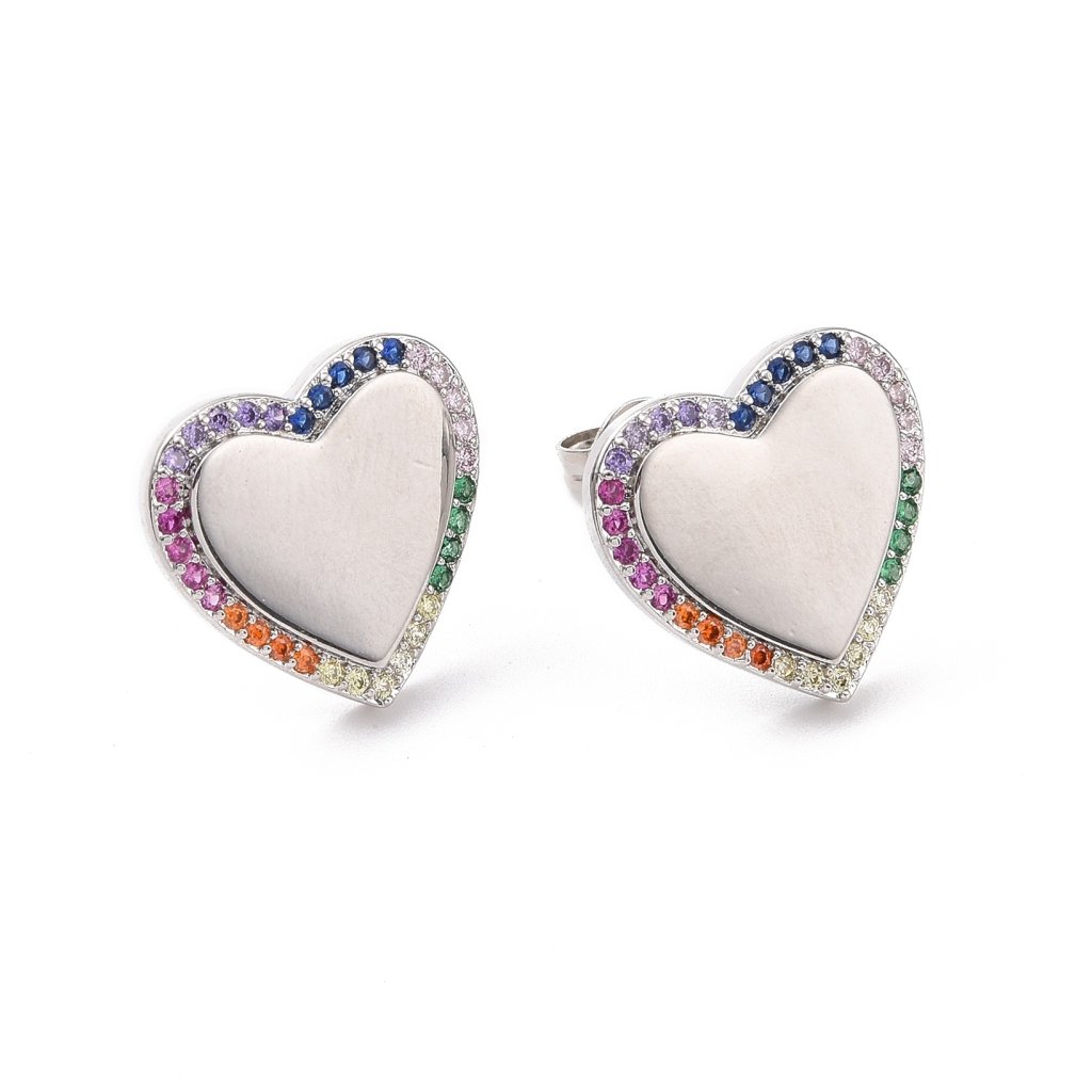 Farebné srdiečkové náušnice so zirkónmi, platinová povrchová úprav