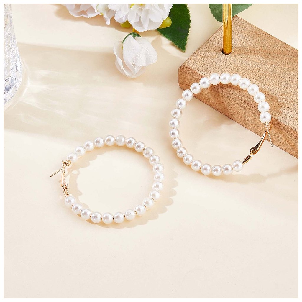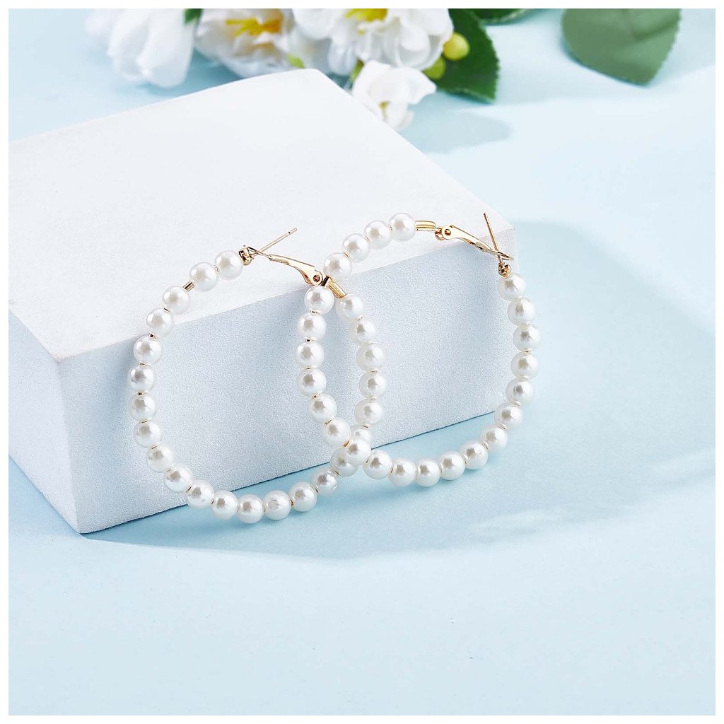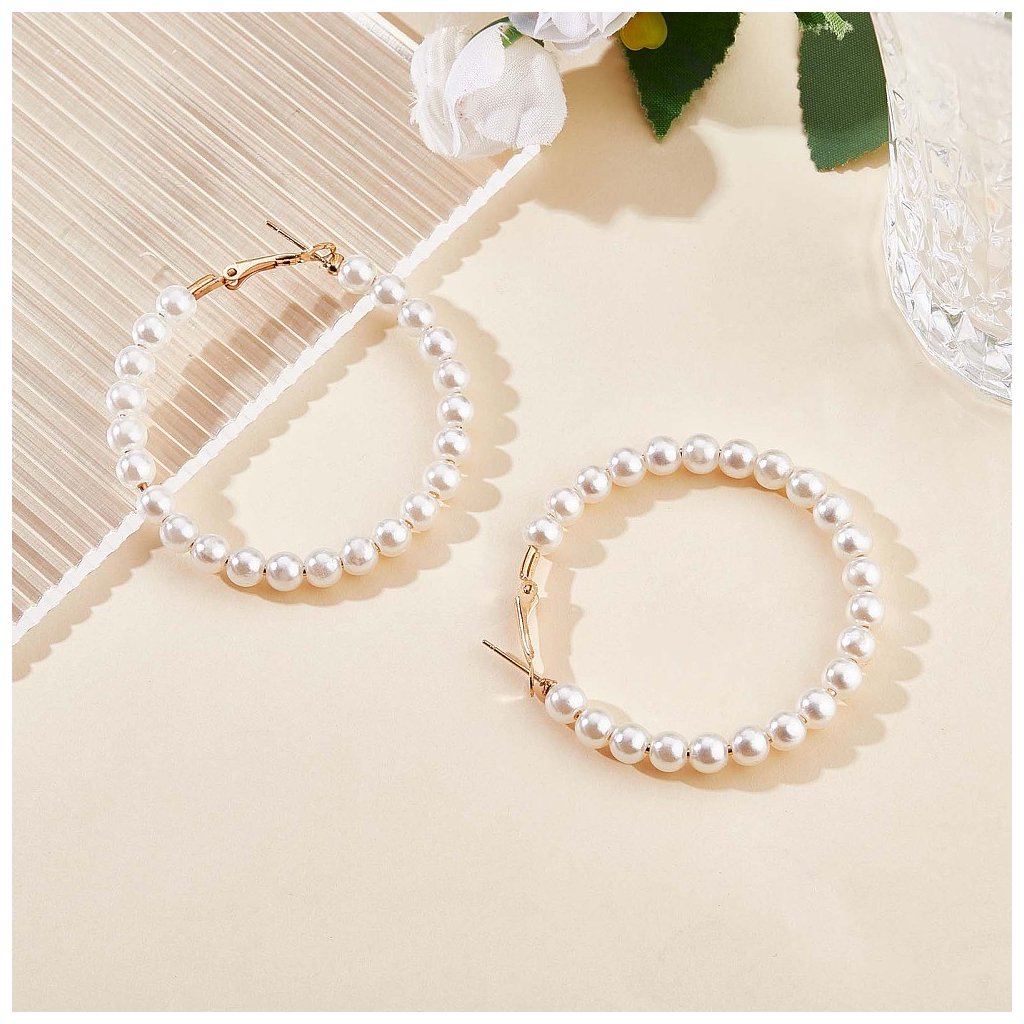 Elegantné kruhové náušnice so syntetickými perlami – priemer 53 mm