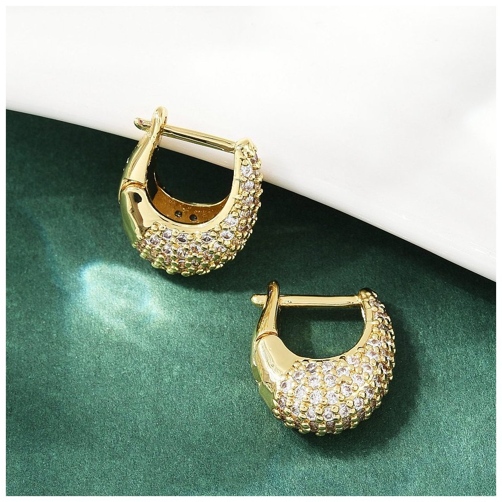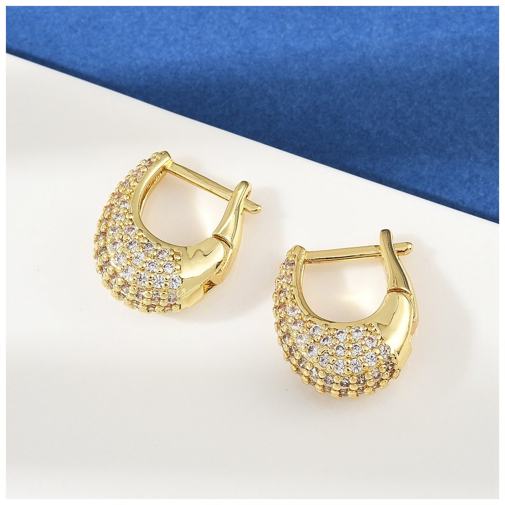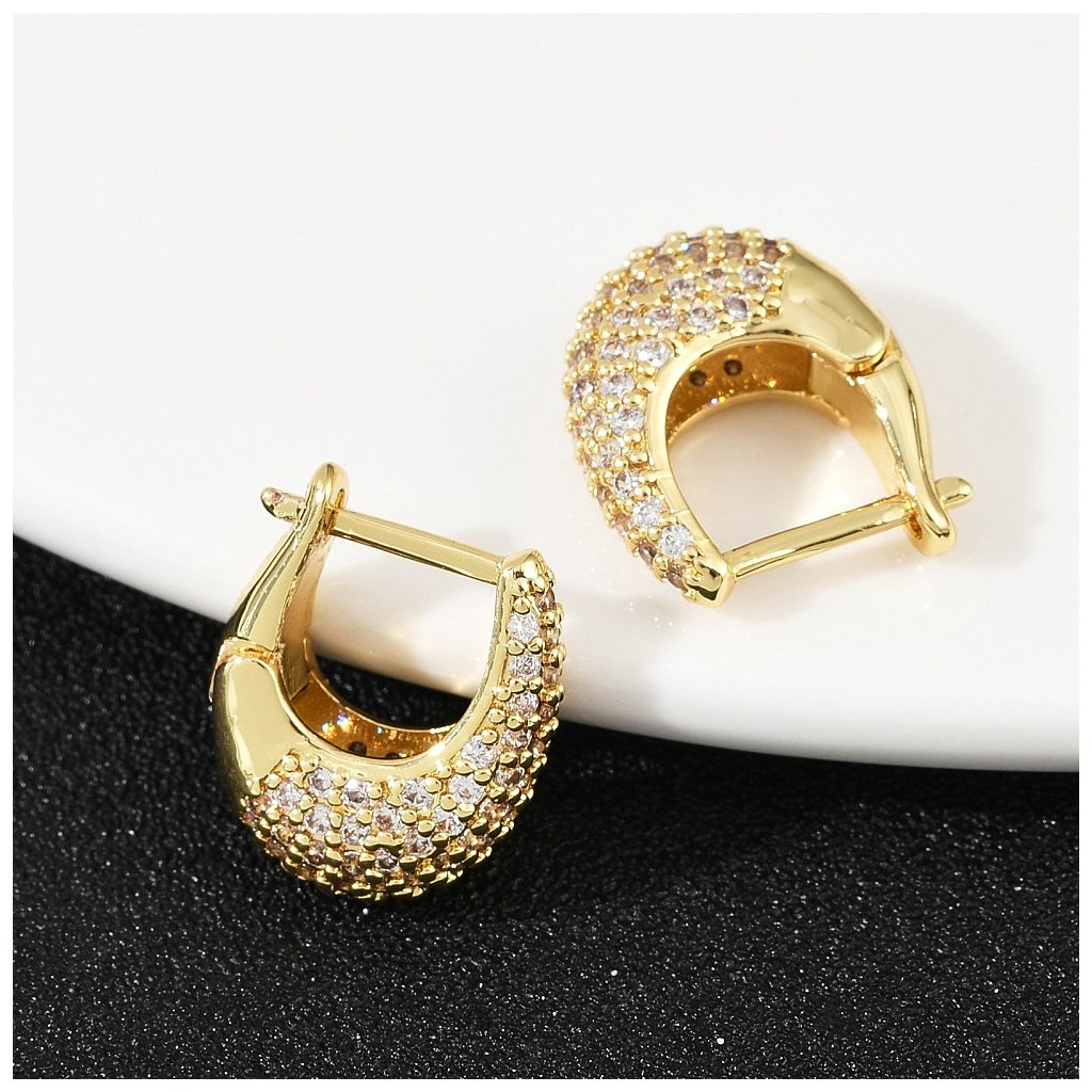 Oválne náušnice zlatej farby s čírymi zirkónmi 17 mm