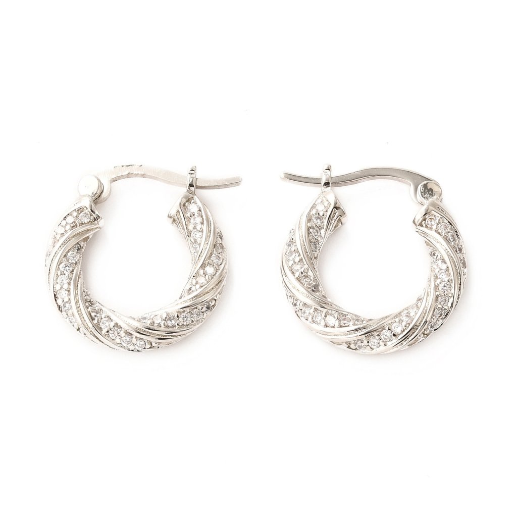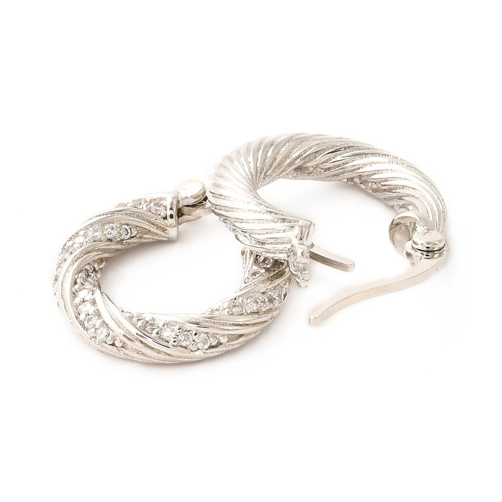 Prepletené kruhové náušnice s čírymi zirkónmi – dámske náušnice s jemným leskom