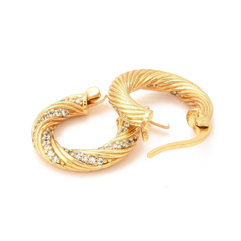 Prepletené kruhové náušnice s čírymi zirkónmi – dámske náušnice so zlatým leskom