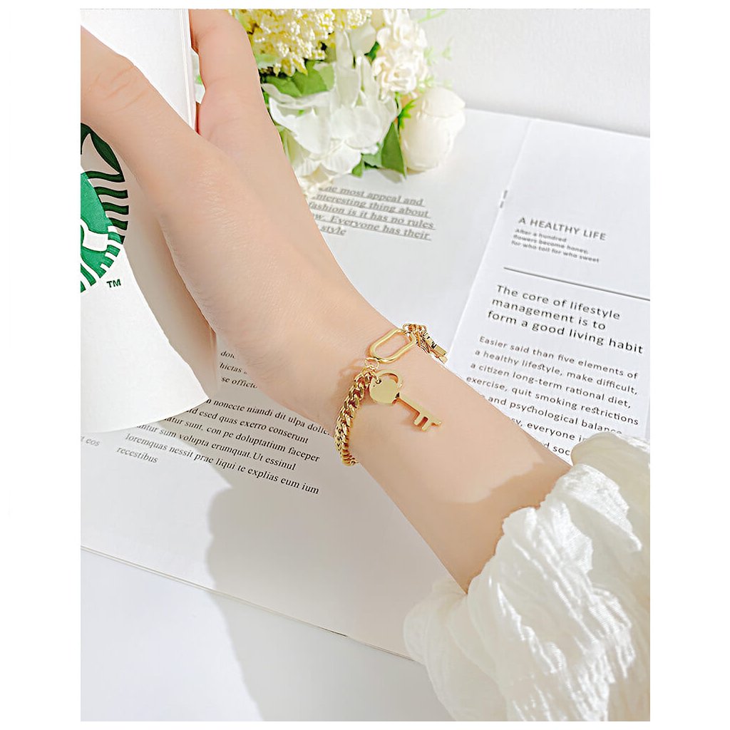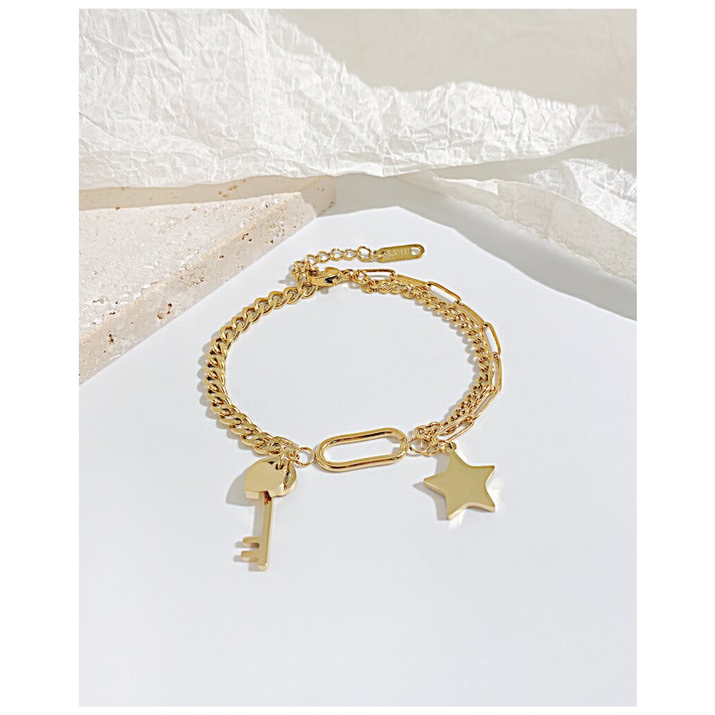Dámsky náramok kľúč k srdcu a k hviezdam chirurgická oceľ zlaté prevedenie