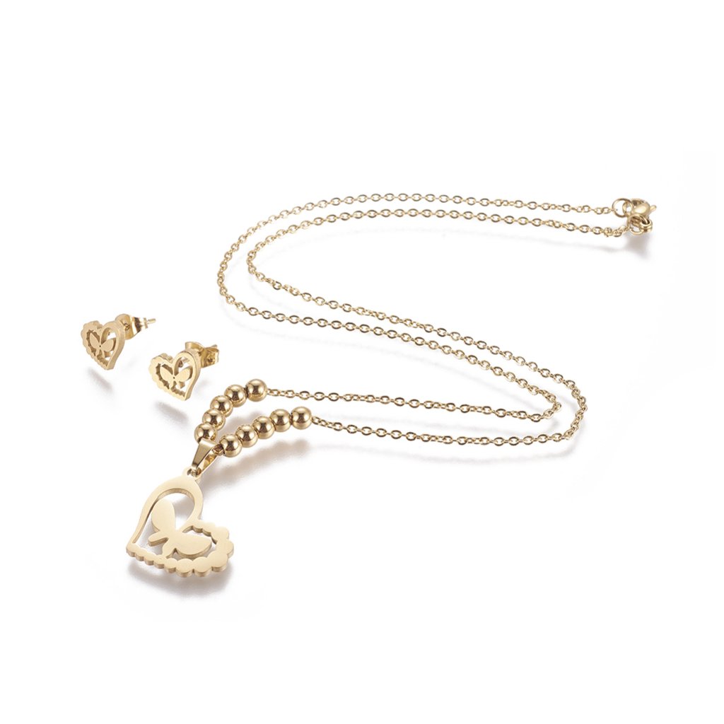 Dámska súprava motýľ a srdce z chirurgickej ocele