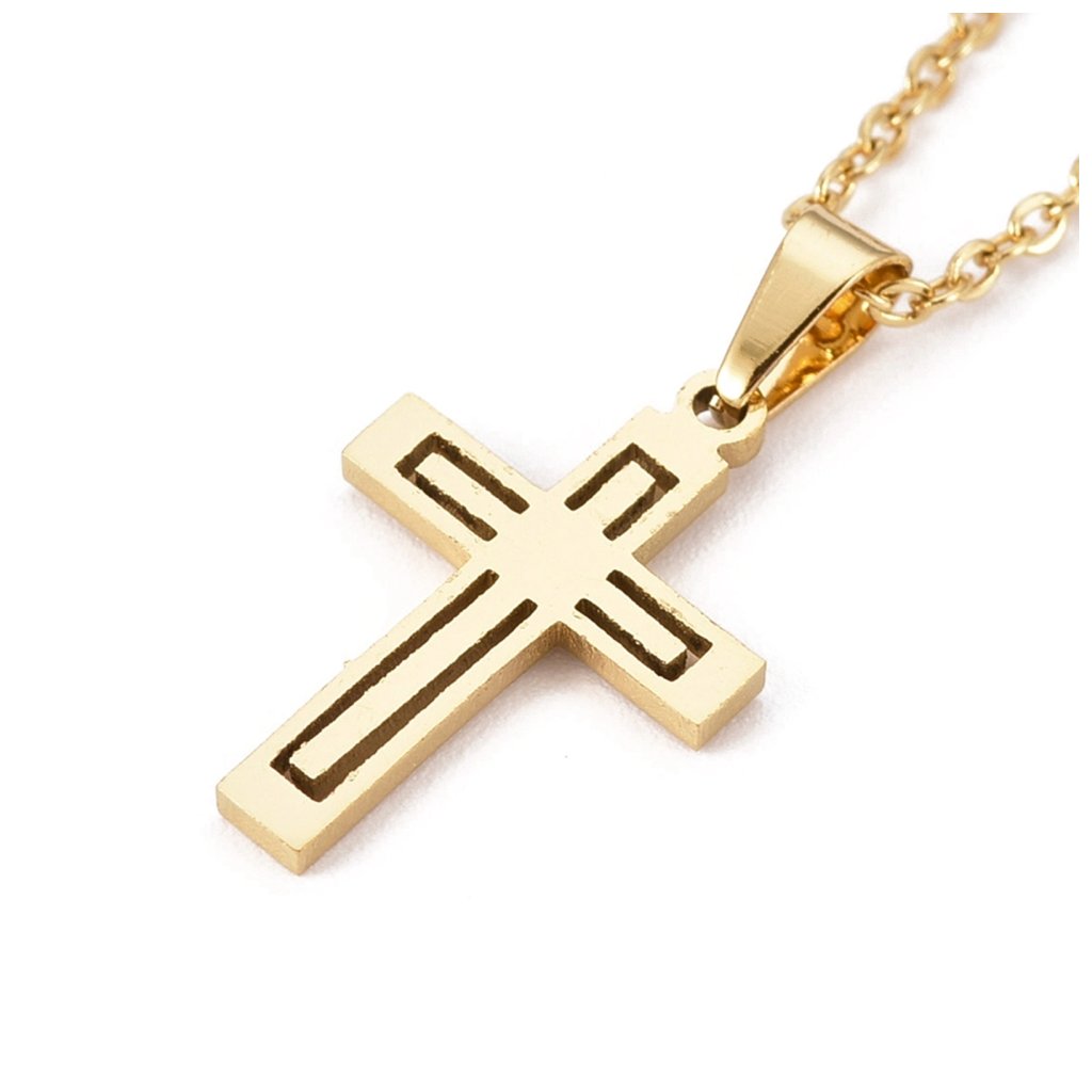 Krížik prívesok náušnice a retiazka zlaté prevedenie chirurgická oceľ