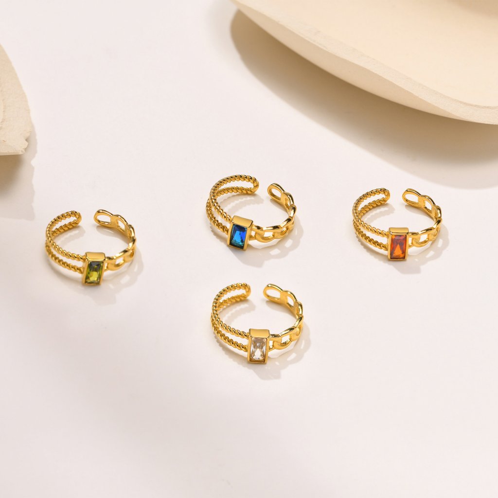 Dámsky prsteň z chirurgickej ocele nastaviteľný so zeleným zirkónom