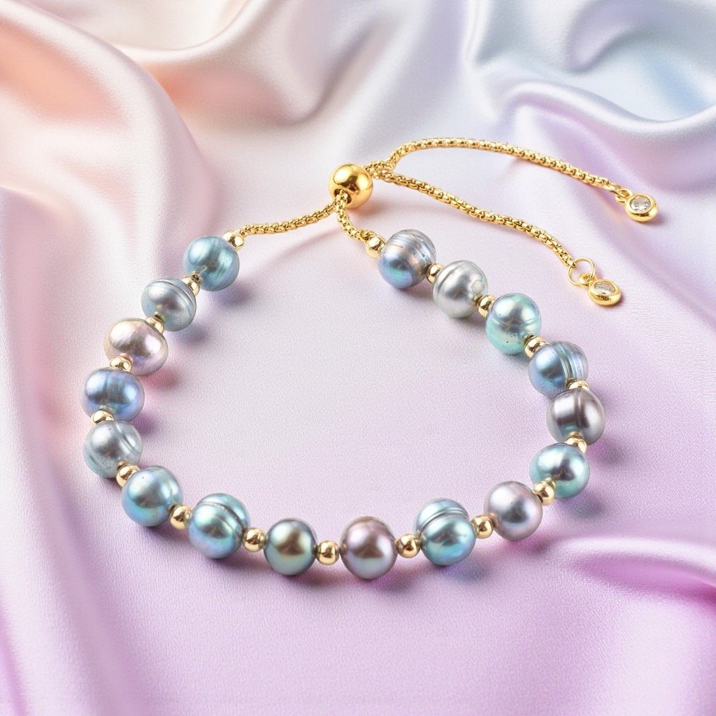 Módny dámsky náramok zlatej farby s tahiti perličkami