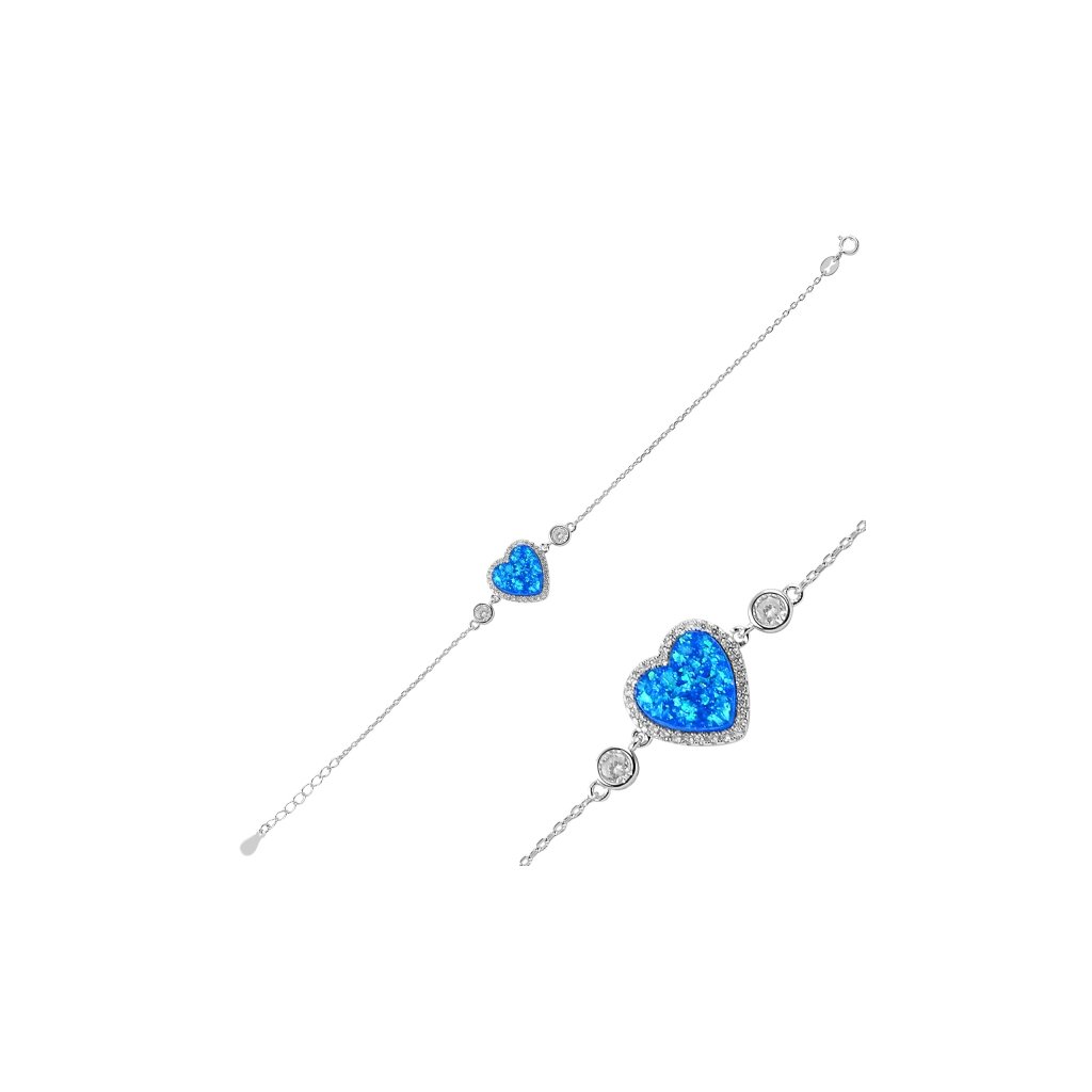 Elegantný dámsky náramok vyrobený zo striebra so špeciálnou povrchovou úpravou (ródium) doplnený modrým opálom v tvare srdca a čírymi zirkónmi.