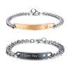 Partnerské náramky, náramky pre dvoch, náramky pre zamilované dvojice. Obľúbené náramky pre páry z chirurgickej ocele v jednoduchých ale aj kombinovaných prevedeniach. Šperky pre páry a šperky pre dvoch v modernom prevedení. Dostupné náramky v striebornom prevedení, v kombinovanom strieborno zlatom a zlato čienom prevedení. Ak hľadáš jednoduchší model, odporúčame náramky simple. Ak hľadáš niečo žiarivejšie, vyber náramky s krištálikmi. Alebo sa nechaj inšpirovať nápisom na náramku ktorý sa ti páči najviac. Nápis je buď vrytý do náramku alebo aplikovaný laserom, t.j. vhodné aj pre náročnejších užívateľov.