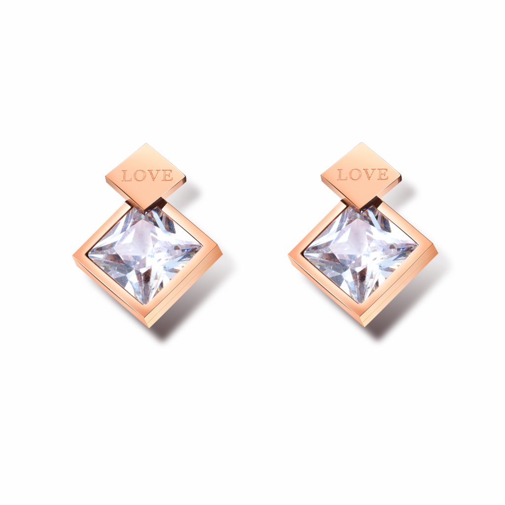 Dámske náušnice štvorce s nápisom Love a Cubic Zirconia vyrobené z chirurgickej ocele