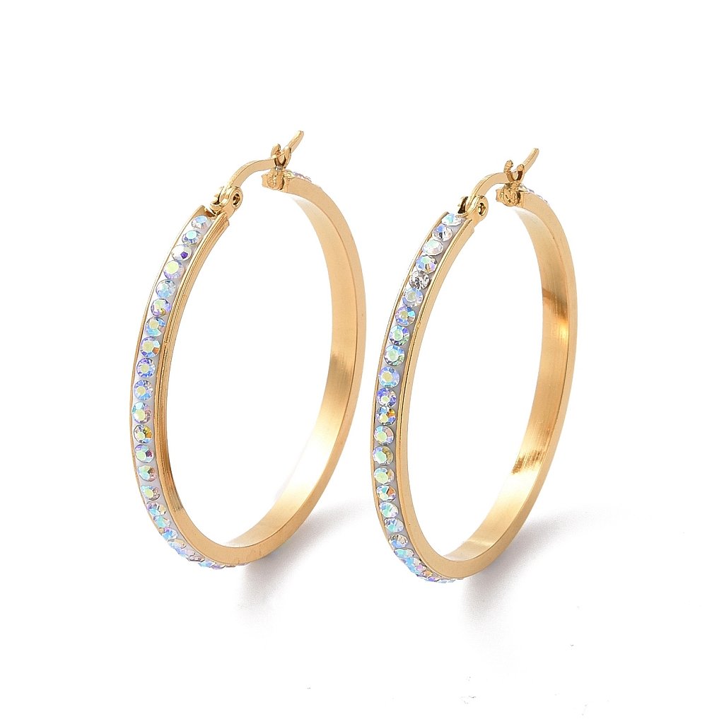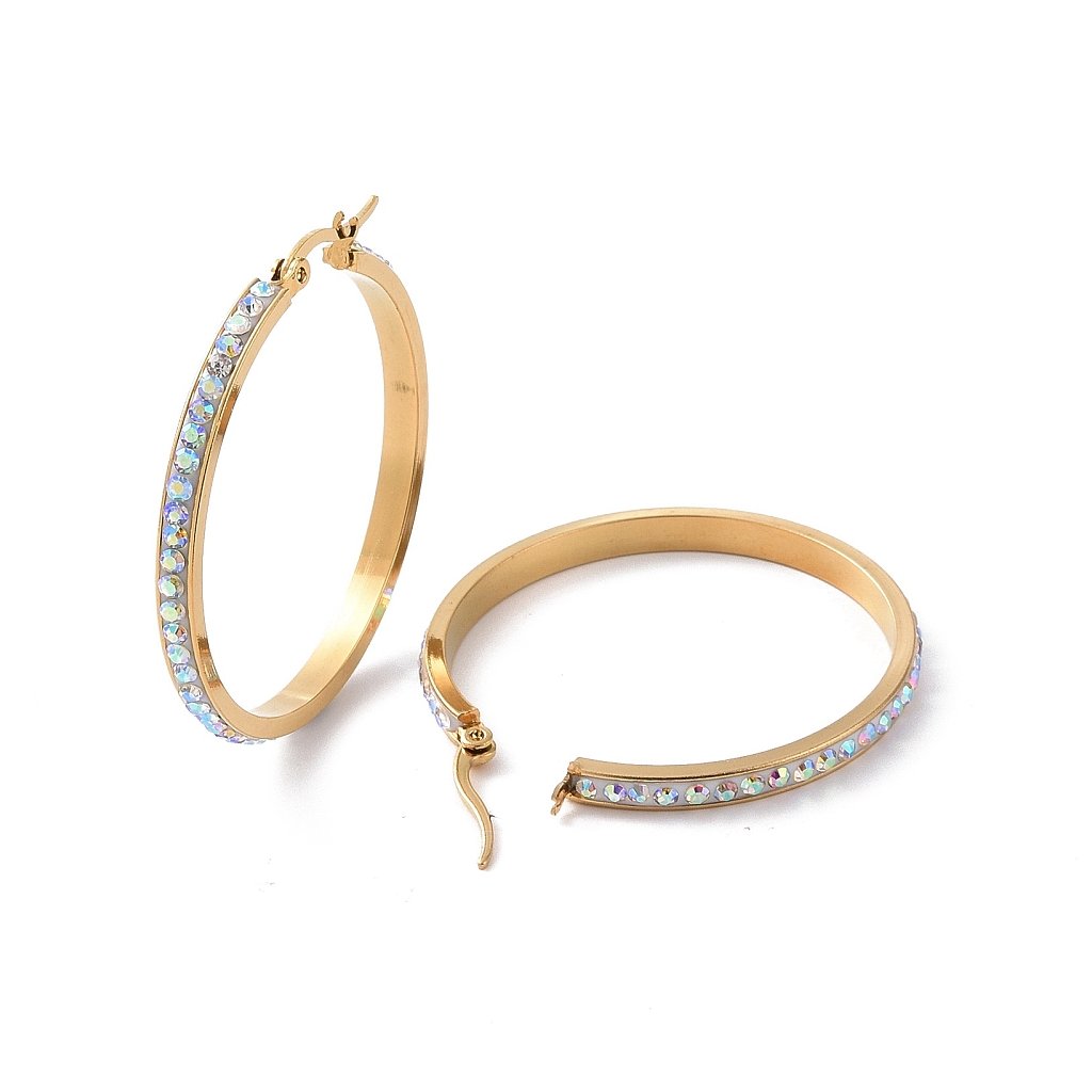 Moderné dámske náušnice kruhy po obvode vykladané farebnými krištálikmi, chirurgická oceľ, 40 mm