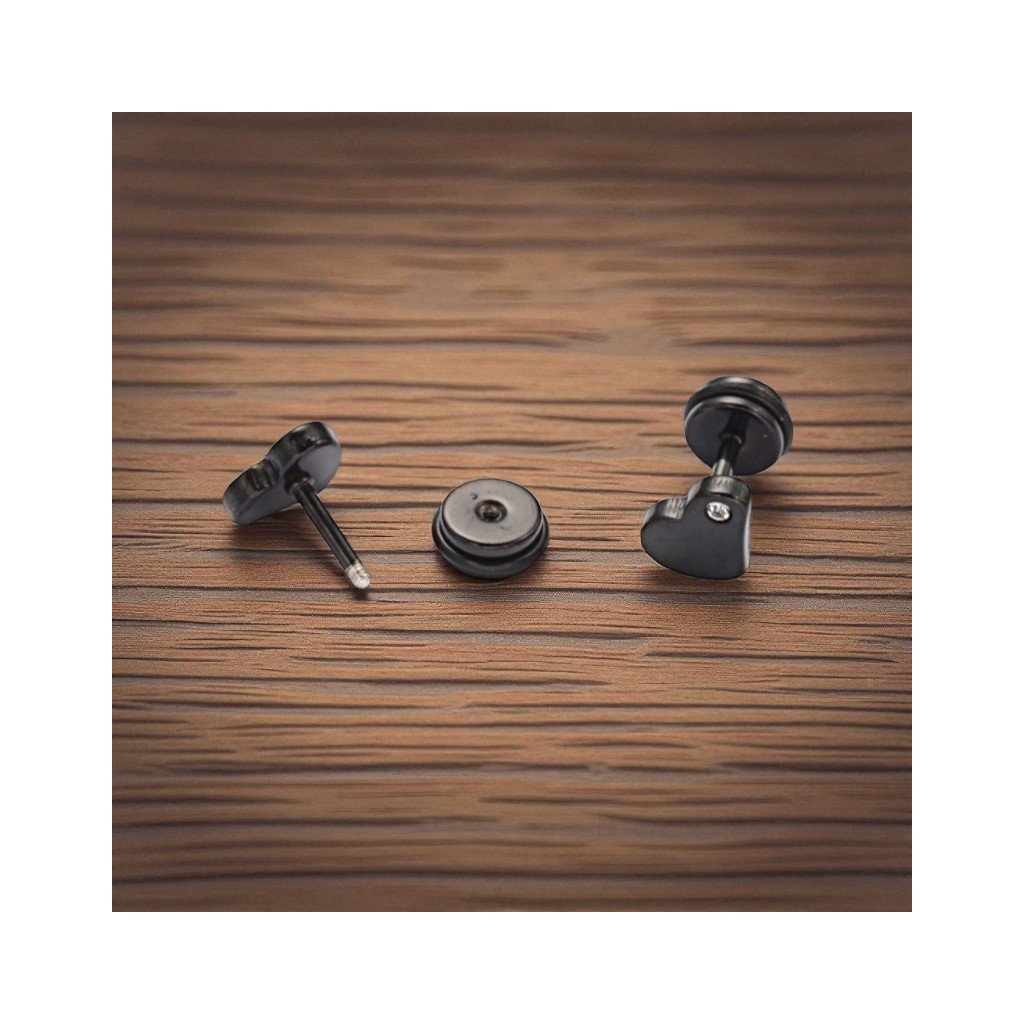 Šróbovacie náušnice z chirurgickej ocele čierne srdiečko so zirkónom