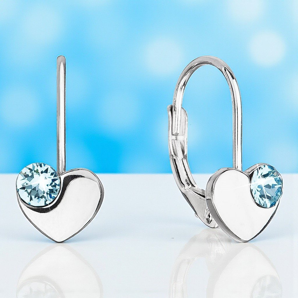 Dievčenské strieborné náušnice v tvare srdca so Swarovski Crystals aqua Ag 925/1000 - 1,6 g