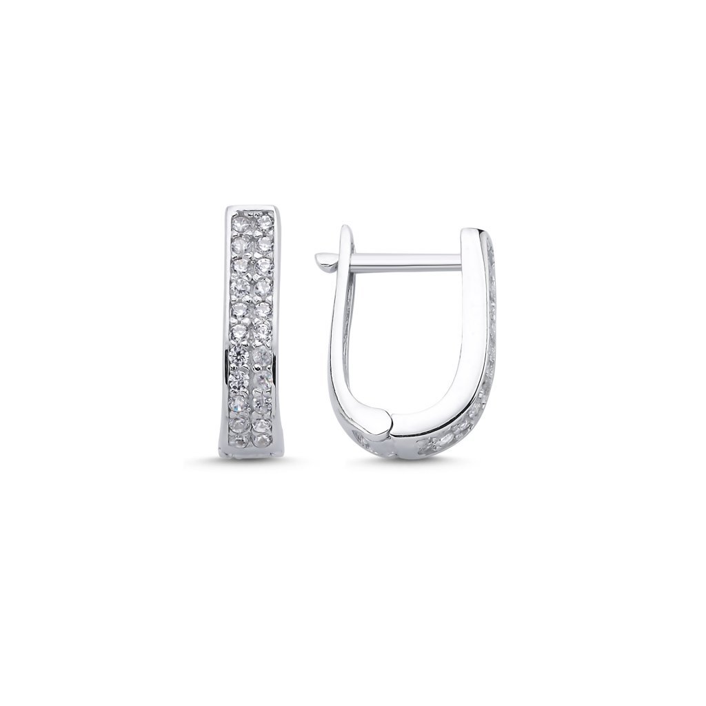 Moderné dámske strieborné náušnice so zirkónmi v dvoch radoch