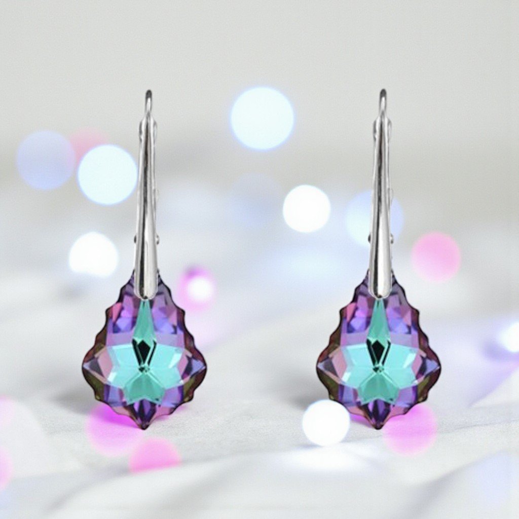 Strieborné dámske náušnice Barok Crystal Vitrail Light - fialové Ag 925/1000