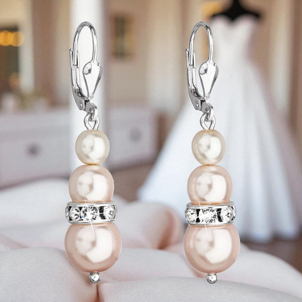 Strieborné dámske visiace náušnice Crystals rosaline, ružové perly, pre ženy, pre dievčatá Ag 925/1000 Rh (1g)