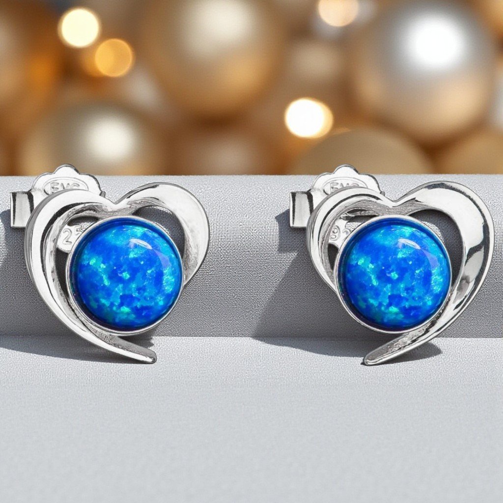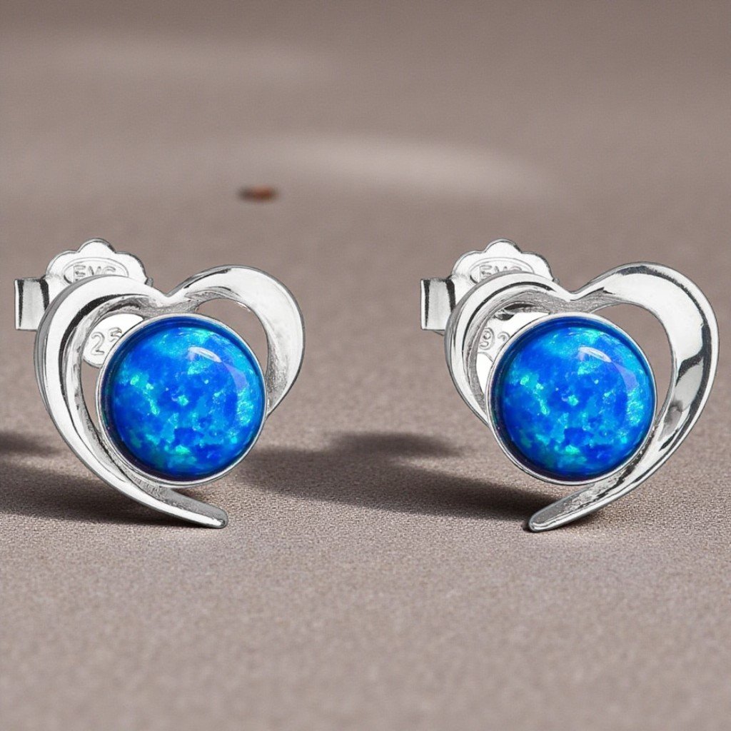 Strieborné dámske náušnice v tvare srdiečka s modrým opálom, dievčenské náušnice Ag 925/1000 1,33g/1g