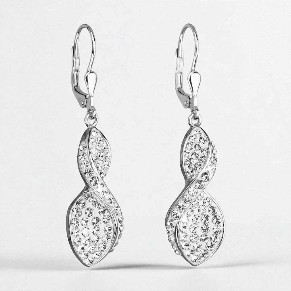 Strieborné dámske visiace náušnice so Swarovski crystals biele špirály Ag 925/1000