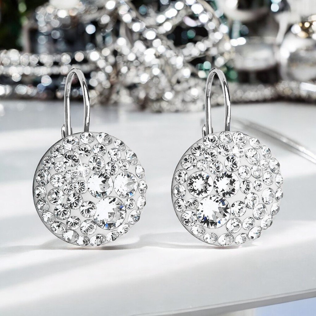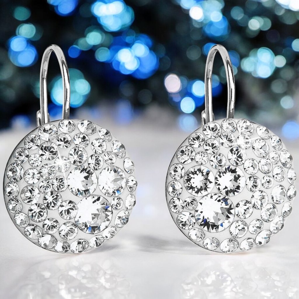 Ideálna veľkosť tvar a rozmer. Obľúbené okrúhle dámske náušnice so zapínaním na klipsňu, vykladané čírymi krištálikmi MADE WITH SWAROVSKI CRYSTALS. Šperk si zachováva svoju farbu, lesk, je odolný proti sčernaniu a má dlhú životnosť. Špeciálnou metalickou úpravou bol dosiahnutý antialergický účinok. Tento šperk Vám zabezpečí primeranú dávku exkluzivity.