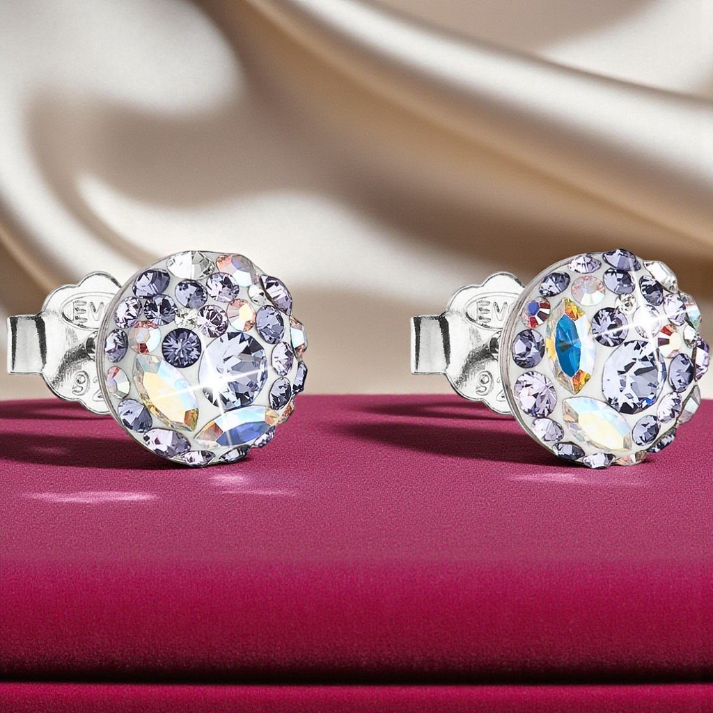 STRIEBORNÉ GUĽATÉ NÁUŠNICE SO SWAROVSKI CRYSTALS - Violet Ag 925/1000