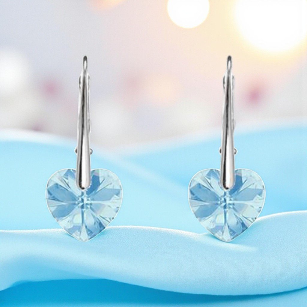 Strieborné náušnice so srdiečkom 10 mm Crystal Aquamarine Ag 925/1000