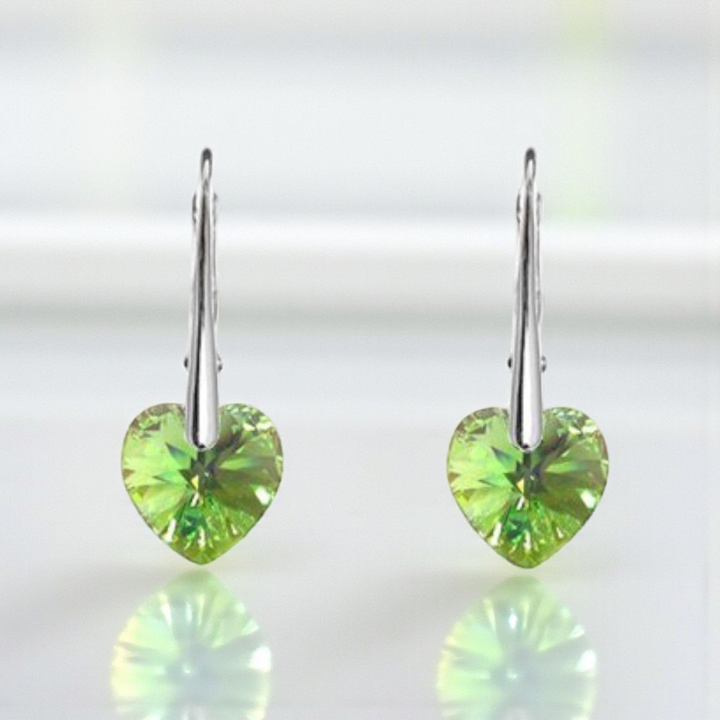 Strieborné náušnice srdiečka 10 mm Crystal Peridot Ag 925/1000