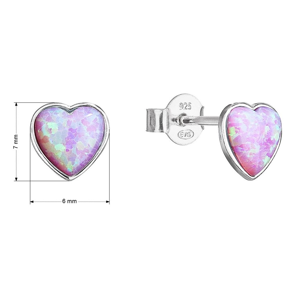 Strieborné náušnice srdiečka s ružovým syntetickým opálom Ag 925/1000