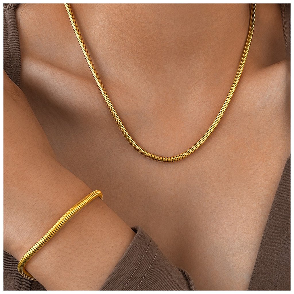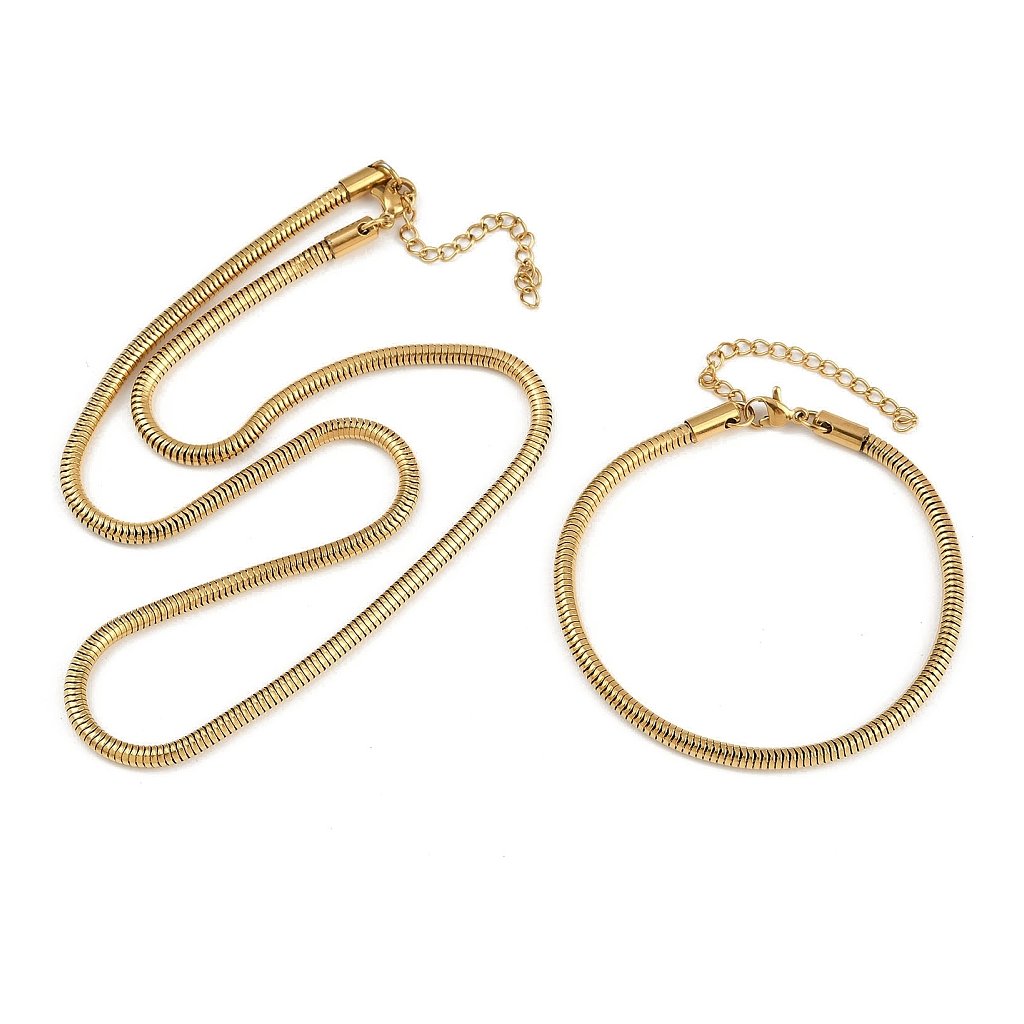 Dámska súprava z nerezovej ocele – Hadia retiazka a náramok (Zlatá farba)