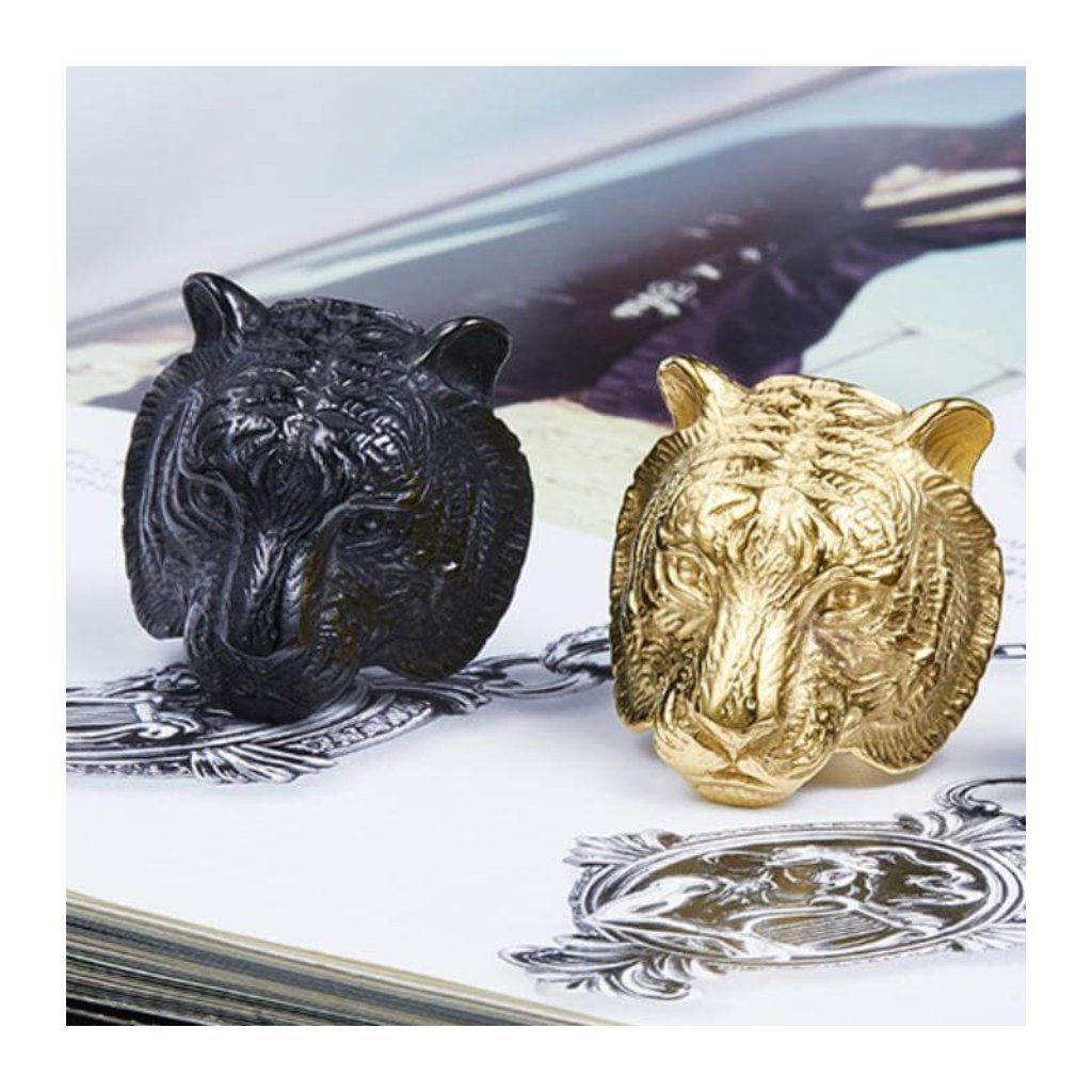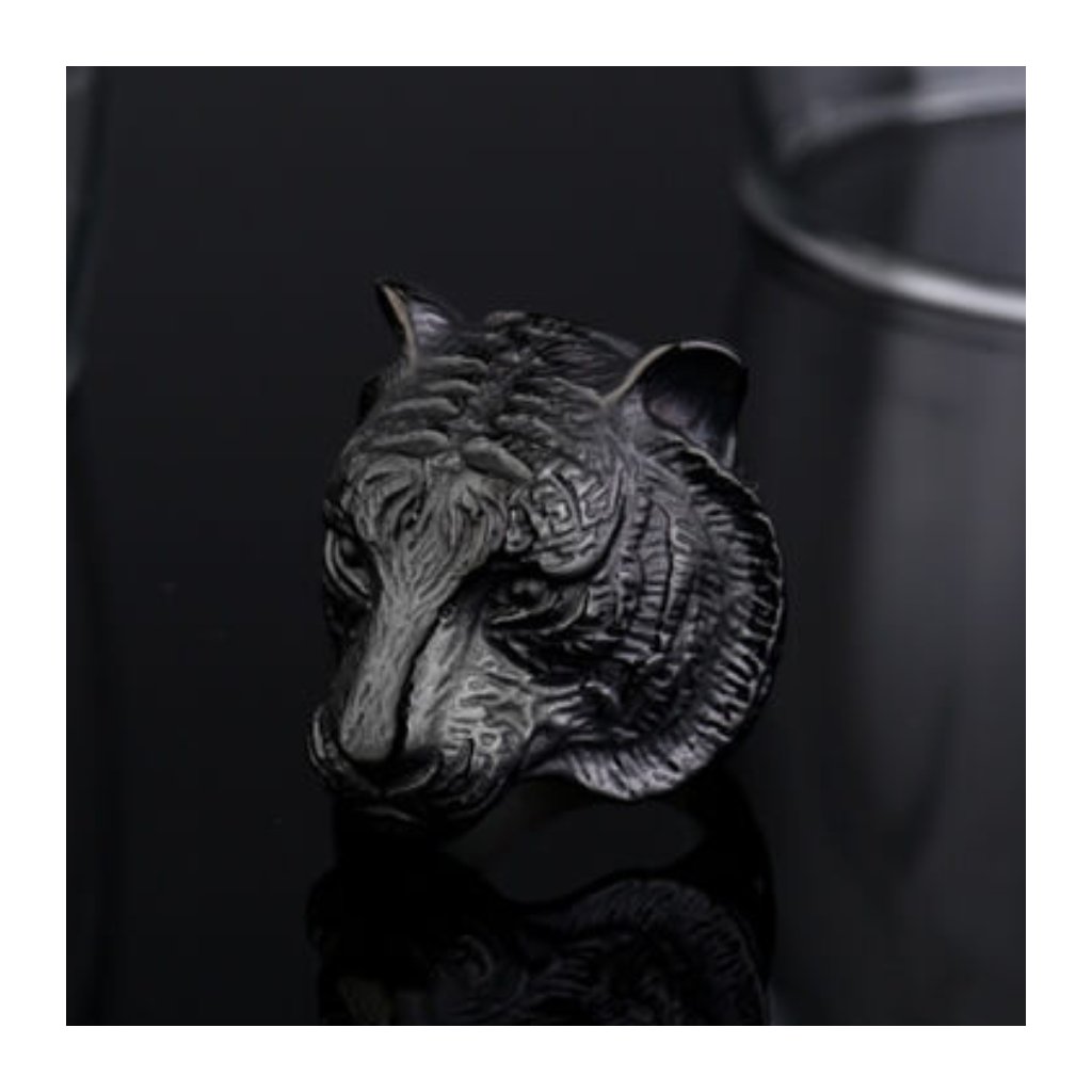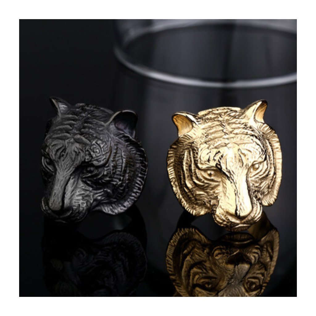 Biker Hlava Tigra masívny pánsky prsteň z chirurgickej ocele v čiernom prevedení