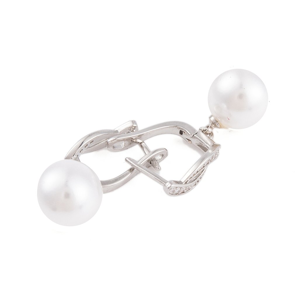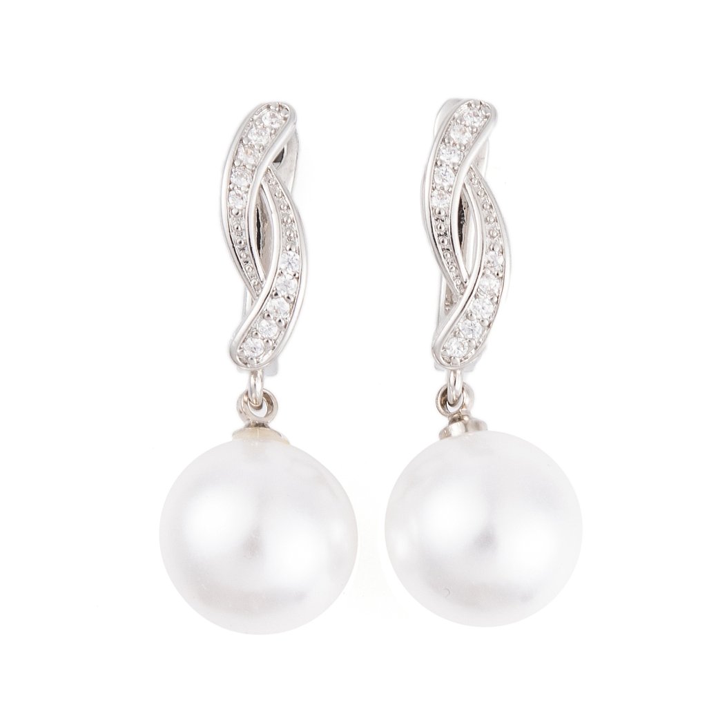 Vrchná časť náušníc je tvorená elegantne zvlnenou líniou, ktorá je husto osadená trblietavými kubickými zirkónmi. Tieto kamienky zachytávajú svetlo pri každom pohybe a vytvárajú oslnivú iskru. Z tejto trblietavej vlnky ladne visí dokonale guľatá ABS perla s hladkým povrchom a nádherným leskom, ktorý pripomína pravé morské perly.