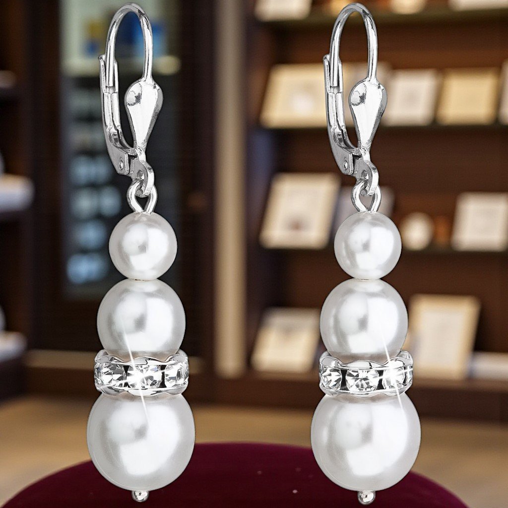Strieborné dámske visiace náušnice crystals, biele guľaté Ag 925/1000
