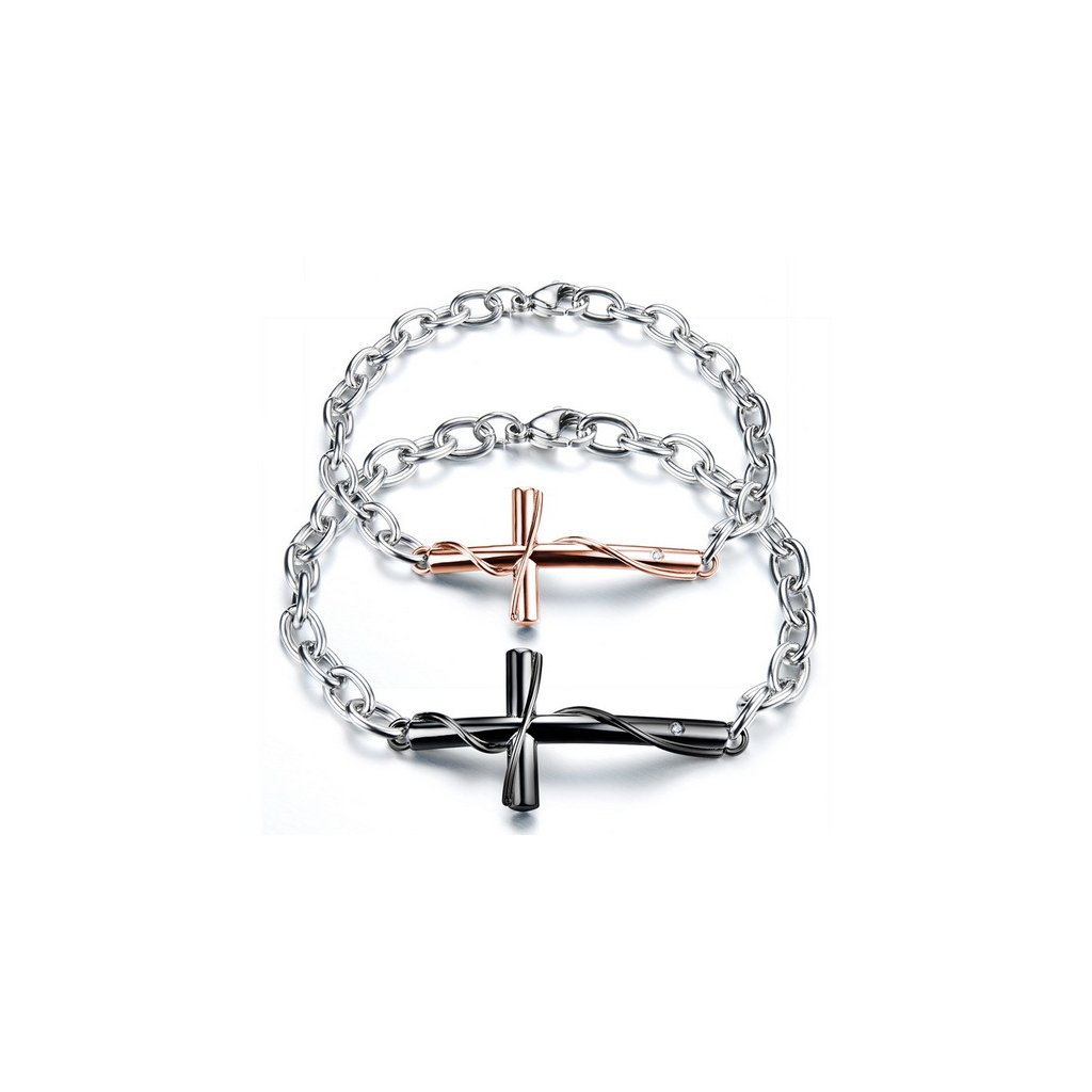 Náramky pre dvojice so vzorom kríža, dĺžka náramku je nastaviteľná. Objednajte si ešte dnes 2 náramky za 1 cenu. Náramky sú vyrobené z kvalitnej chirurgickej ocele s očarujúcim leskom a navyše zabalené v štýlovej darčekovej krabičke. Chirurgická oceľ 316 L patrí vďaka svojim vlastnostiam medzi najvhodnejšie materiály na výrobu šperkov. Tie najdôležitejšie sú vysoká tvrdosť - materiál má vysokú tvrdosť, neohýba sa ani neláme, farebná stálosť - nedochádza k zmene farieb spôsobených vplyvom svetla a odolnosť povrchu - povrch je odolnejší voči poškriabaniu než striebro či zlato.