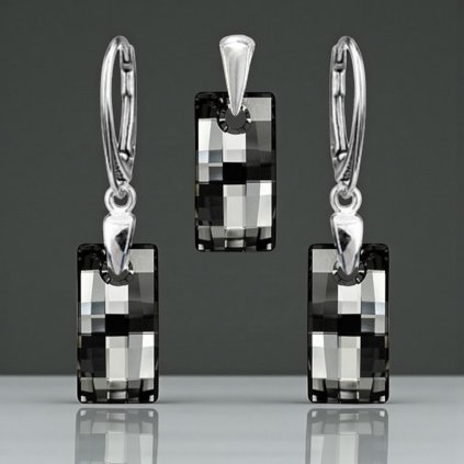 Súprava šperkov so synt. opálom a Preciosa crystals, náušnice a prívesok, zelené srdce Ag 925/1000 Rh (2g)