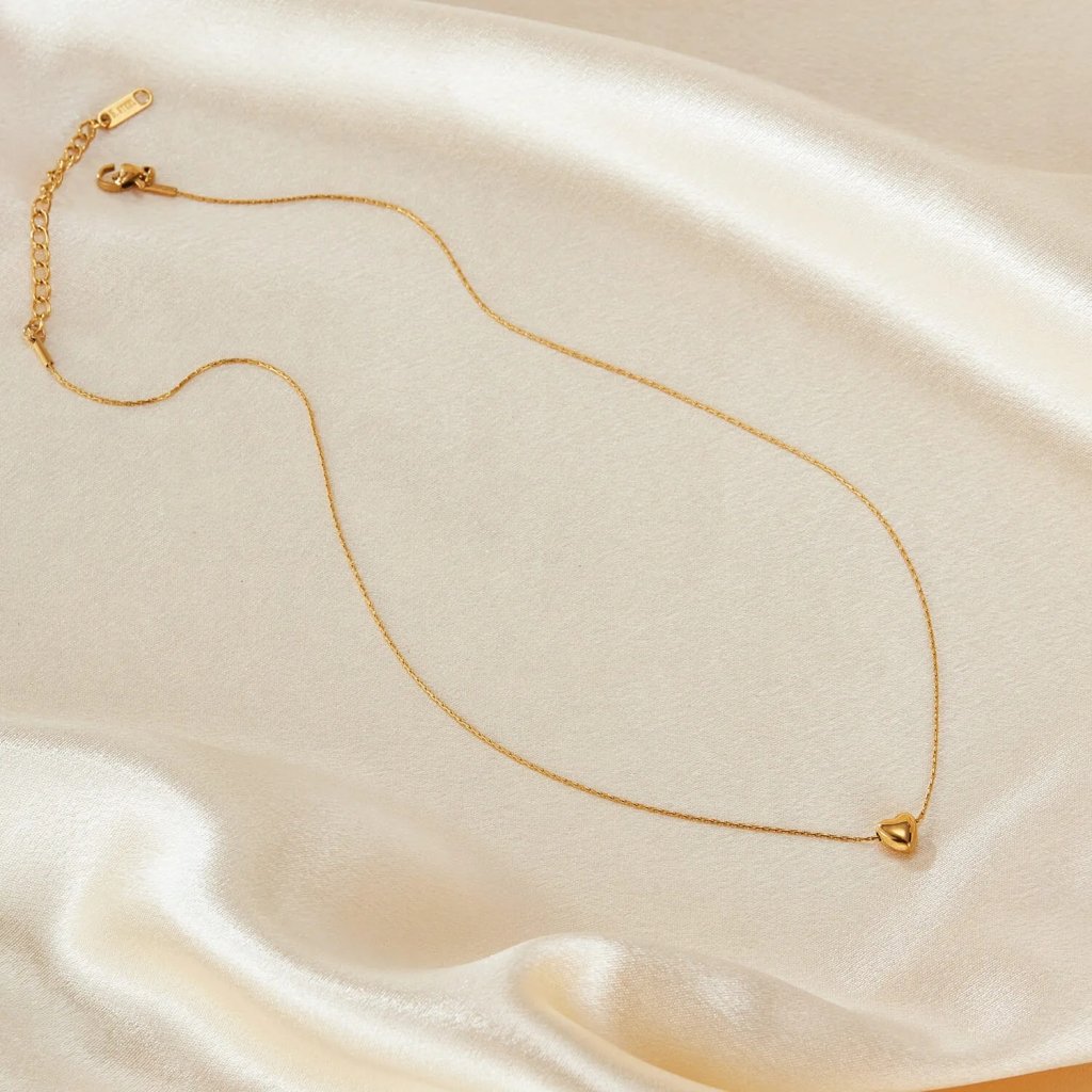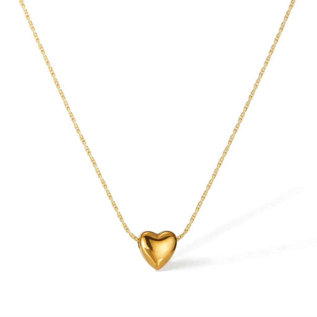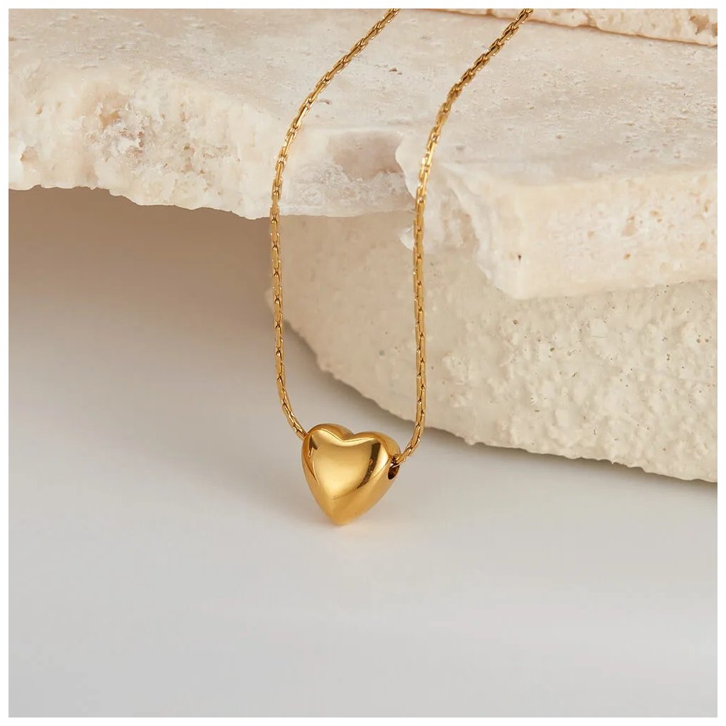 Dodajte svojmu dekoltu nádych romantiky s týmto minimalistickým, no elegantným náhrdelníkom. Ústredným prvkom je dokonale tvarovaný prívesok v podobe malého srdiečka, ktorý je zavesený na jemnej, no pevnej retiazke. Jeho lesklá zlatá povrchová úprava krásne odráža svetlo a dodáva celkovému vzhľadu decentný luxus.