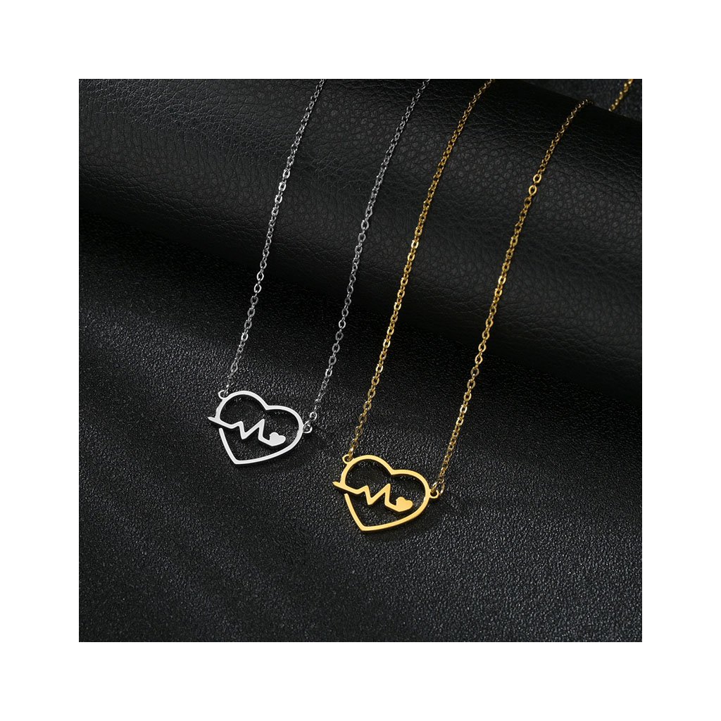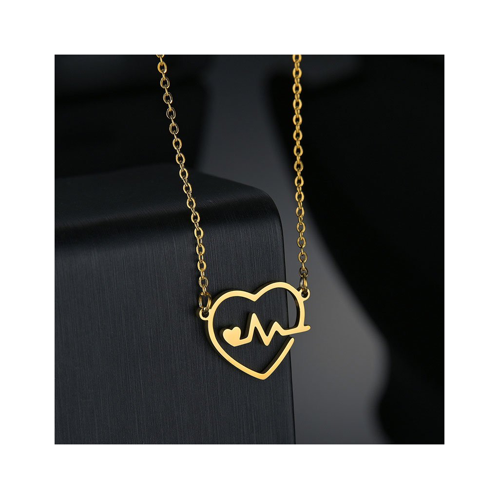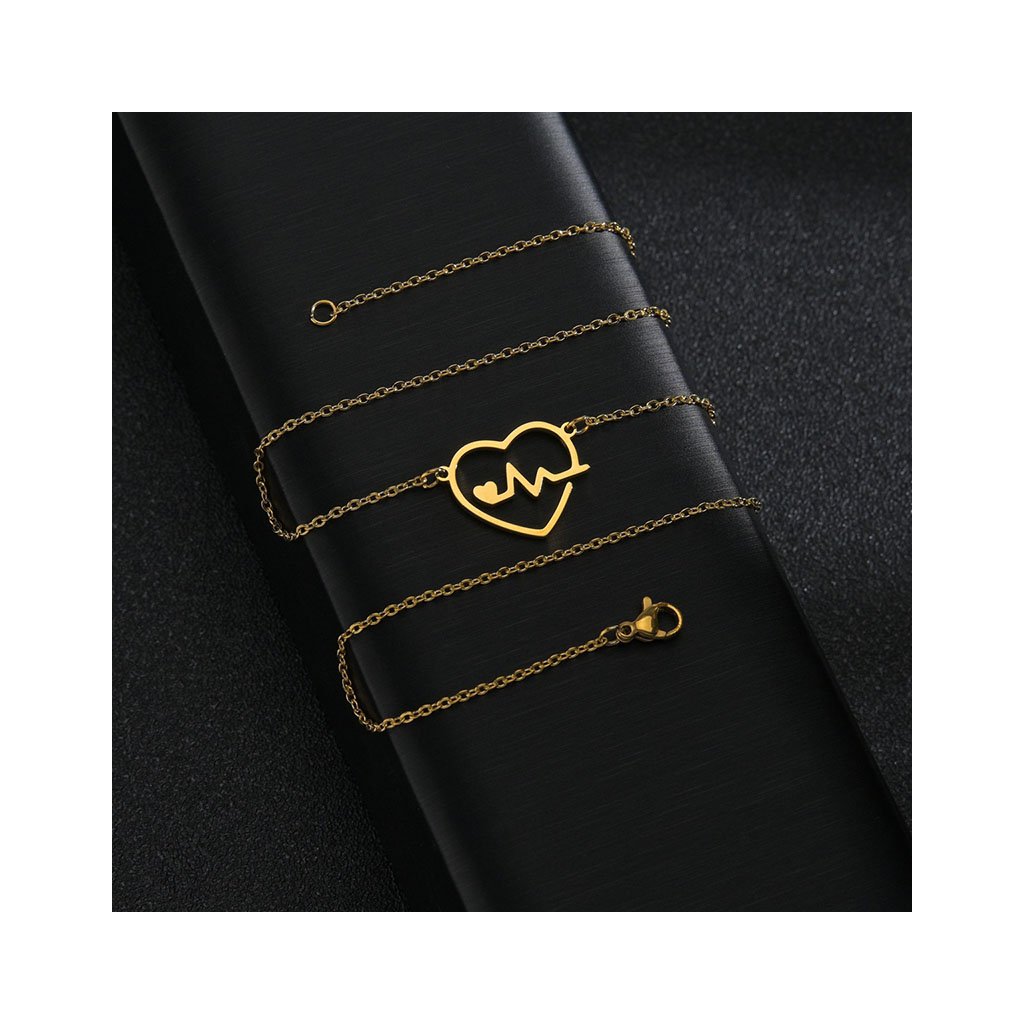 Moderný dámsky náhrdelník srdce puls z chirurgickej ocele, zlaté prevedenie, pre dievčatá, pre ženy