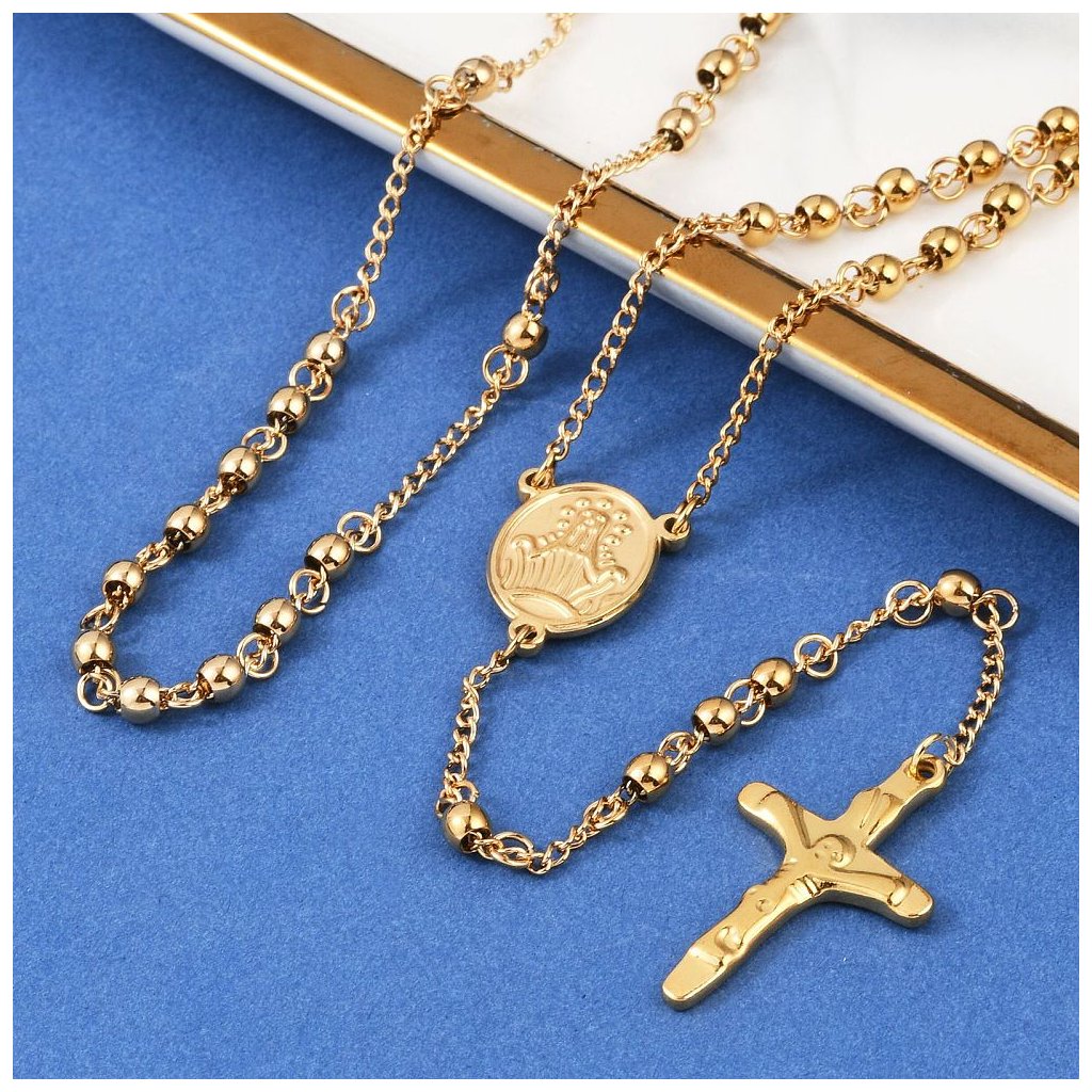 Ružencový set náramok a náhrdelník z krížikov zlaté prevedenie