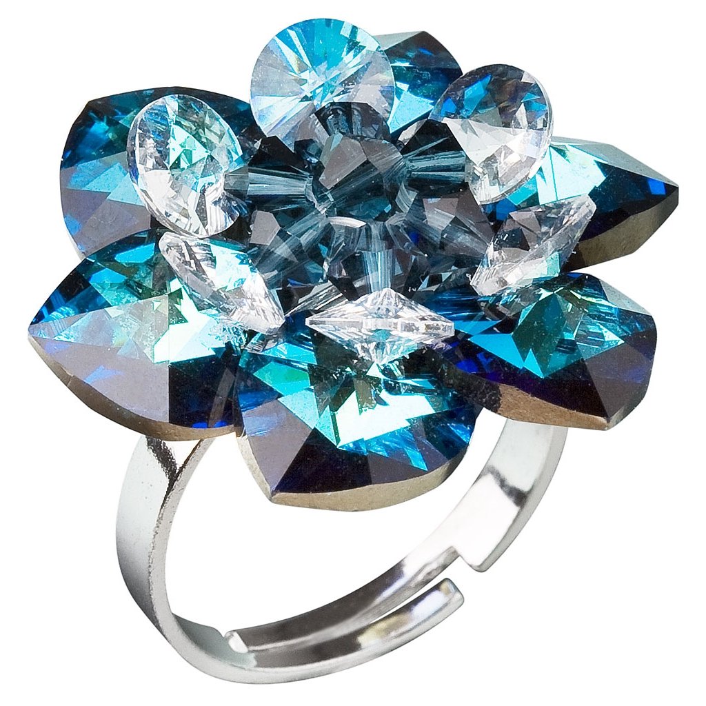 Strieborný prsteň s krištáľmi Swarovski modrý kvietok