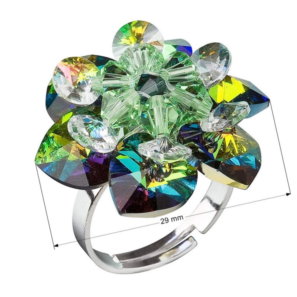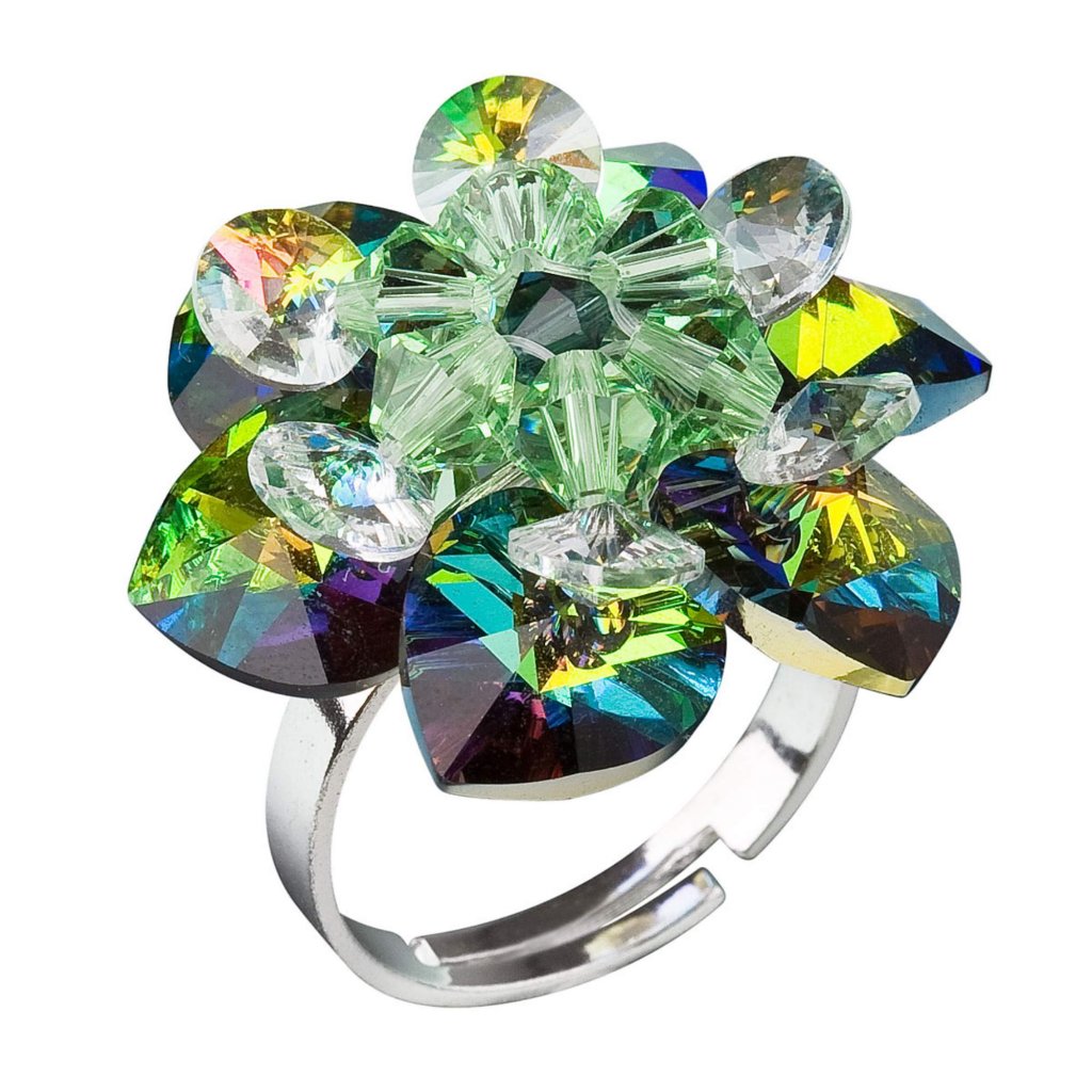 Strieborný prsteň s krištáľmi Swarovski zelený kvietok vitrail medium