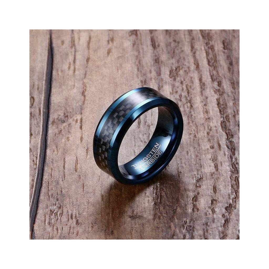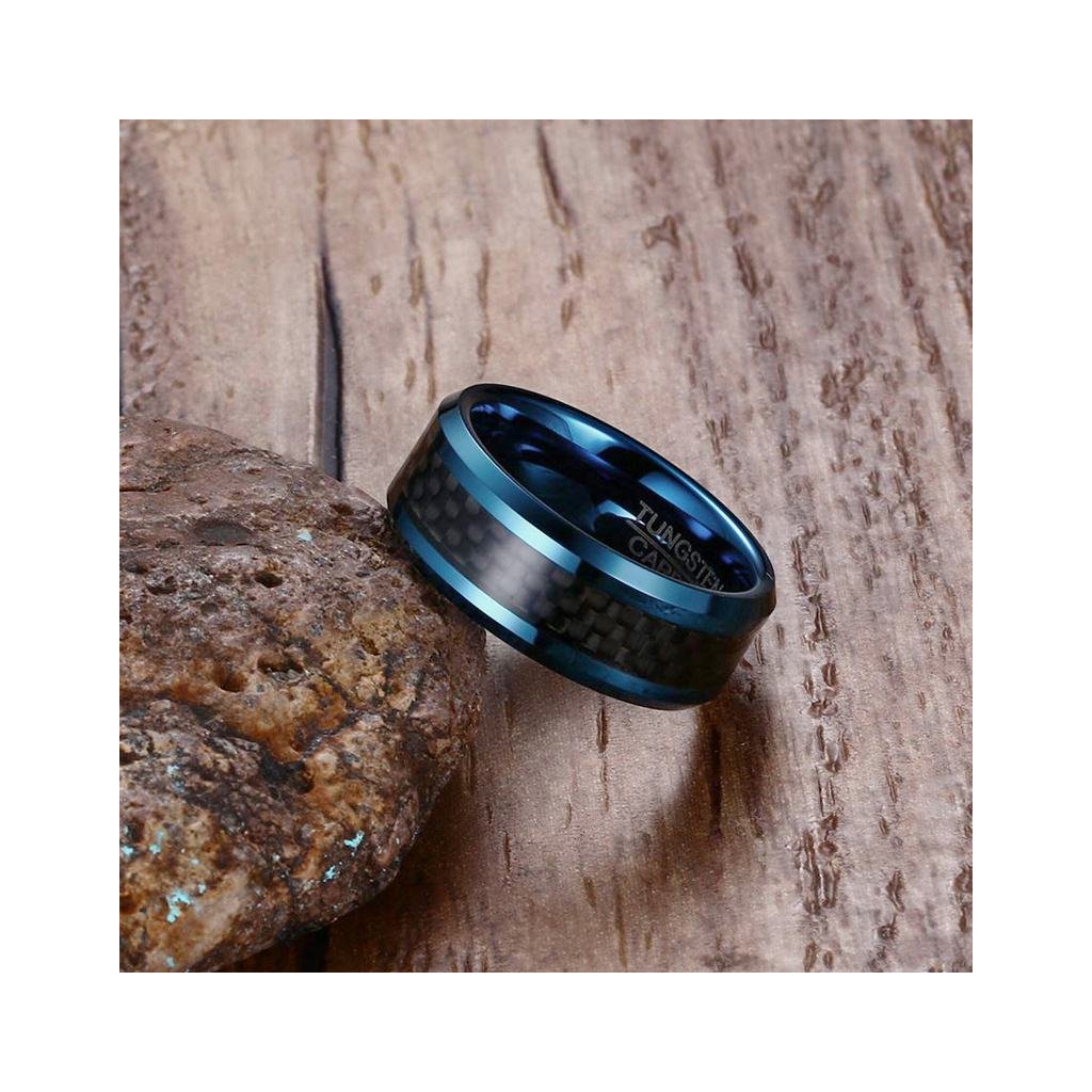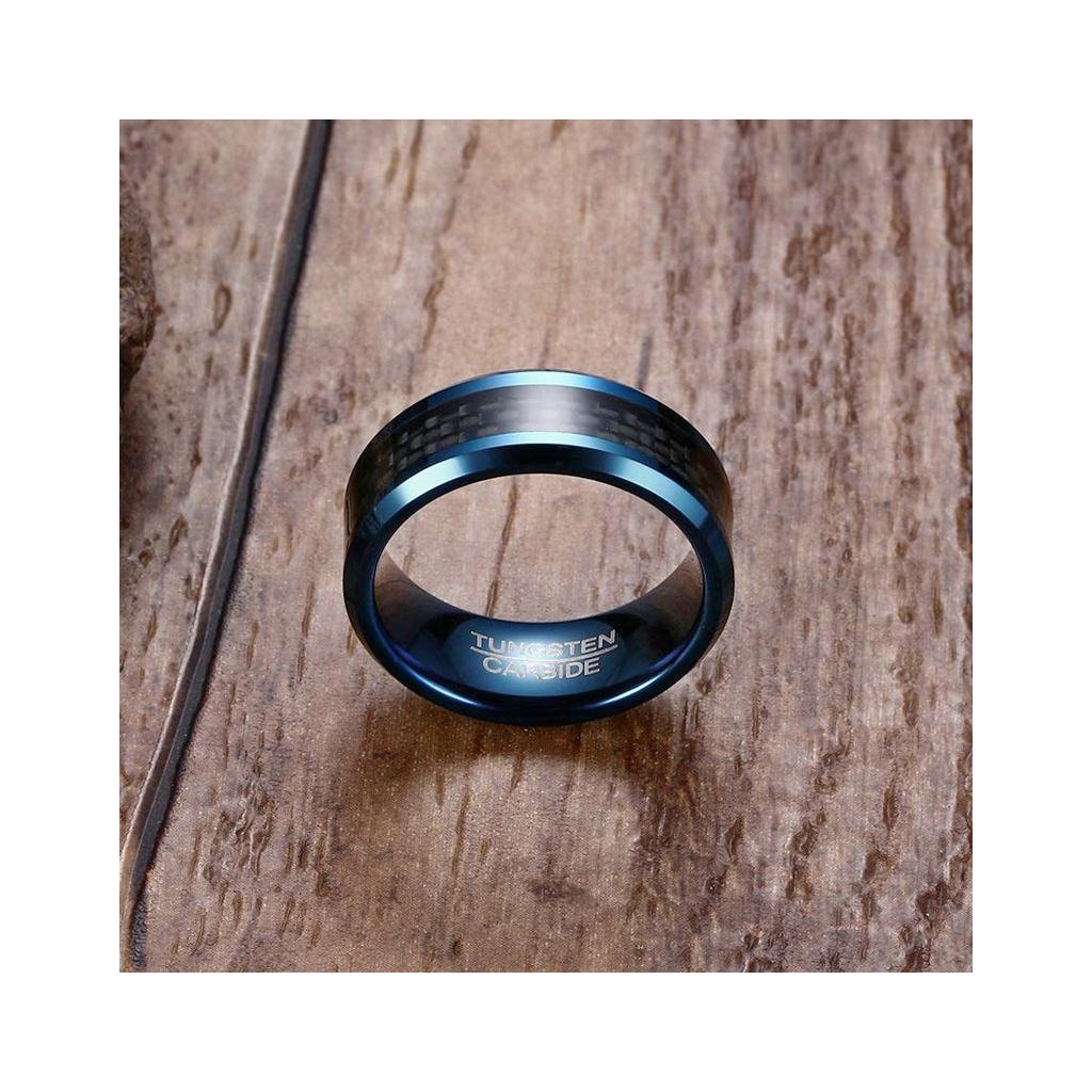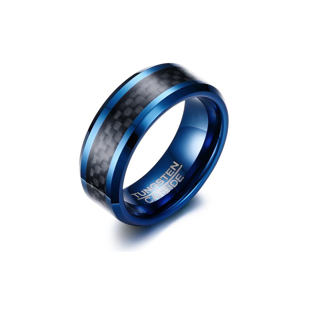 Volfrámový prsteň v modrom prevedení s karbonovým stredom. Prsteň je v precíznom vyhotovení s nádherným decentným leskom. Volfrám má spomedzi prvkov najvyššiu teplotu topenia, tvrdosť a silu v ťahu. Hustota volfrámu je porovnateľná s hustotou zlata. Špecifické vlastnosti volfrámu zaručujú prsteňom vyrobených z tohto kovu stále vlastnosti, vysokú tvrdosť a jedinečný lesk. Volfrám vôbec nekoroduje, poškodiť ho možno iba minerálnymi rozpúšťadlami. To znamená prstene vyrobené z volfrámu majú veľmi dlhú životnosť. Jeho použitie v klenotníctve sa rozmohlo hlavne v posledných rokoch vďaka schopnosti udržať si lesk a stále zloženie po dlhú dobu.