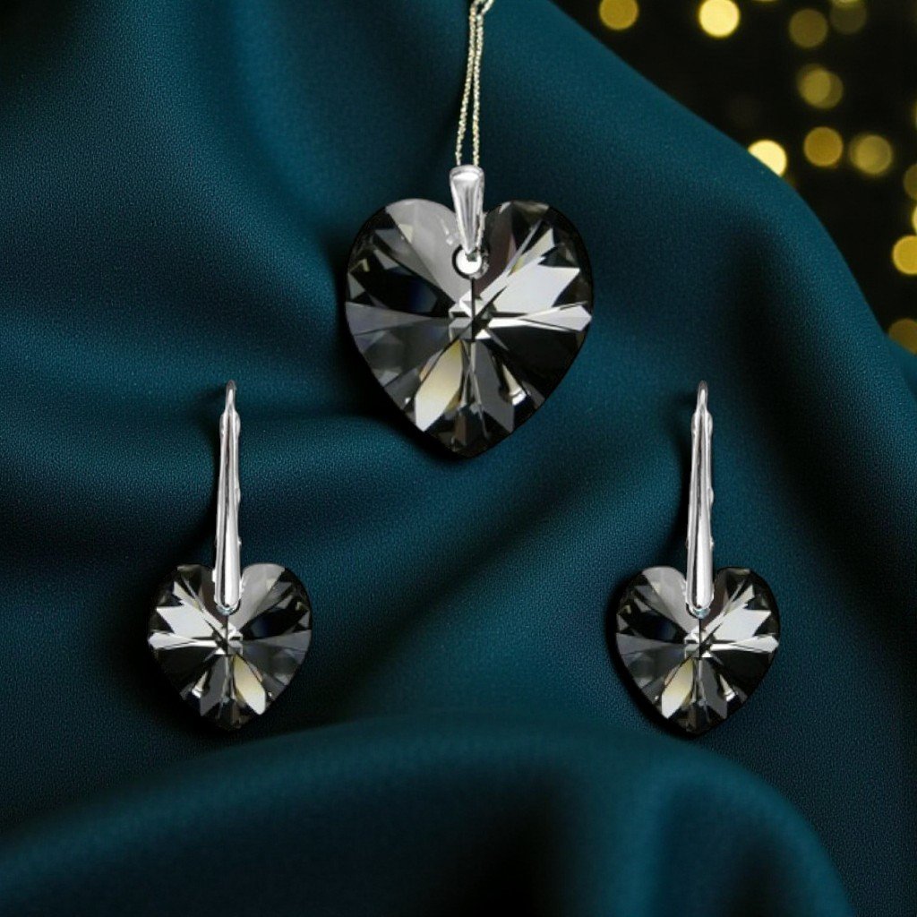 Strieborný prívesok a náušnice srdce Crystals čierne Silver Night Ag 925/1000