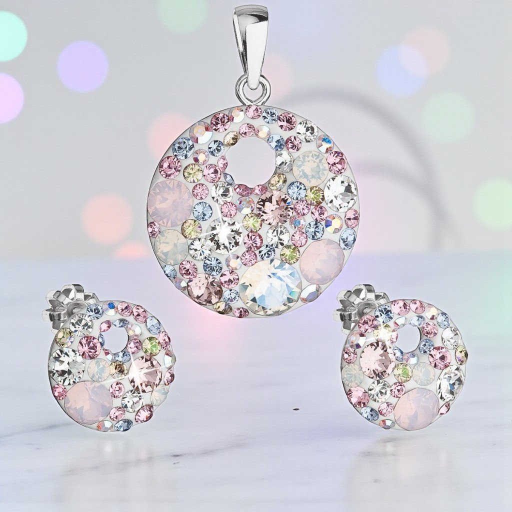 Súprava šperkov s kryštálmi Swarovski - ružové, okrúhly tvar Ag 925/1000