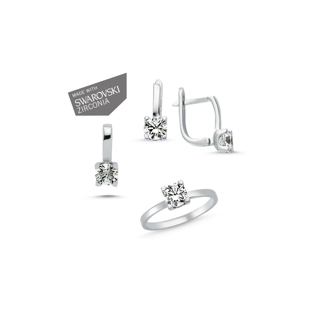 Súprava šperkov so zirkónmi Swarovski Náušnice so zirkónom Ag 1g, prívesok so zirkónom Ag 1g, prsteň so zirkónom Ag 1 g