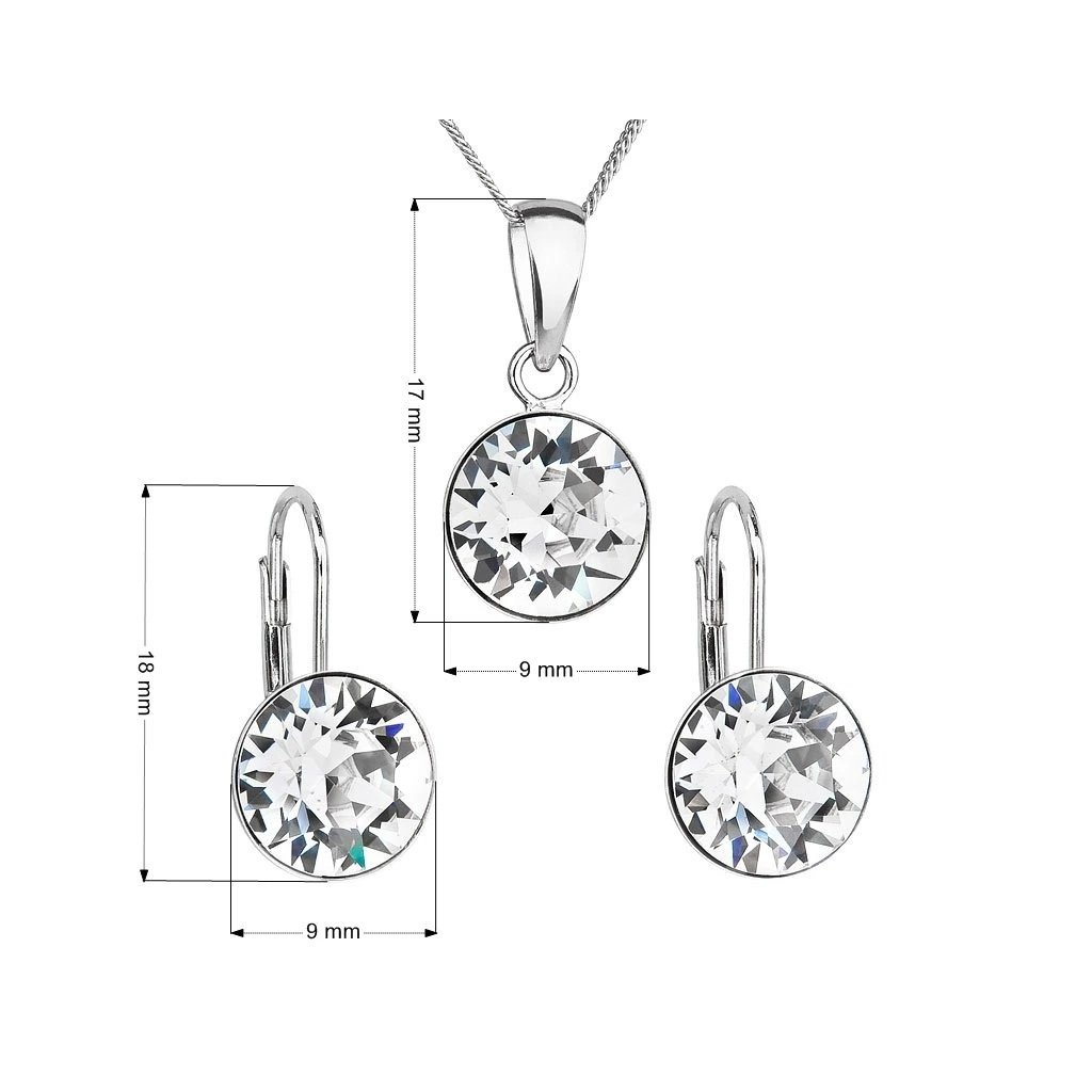Sada šperkov s krištáľmi Swarovski náušnice a prívesok biele okrúhle Ag 925/1000 Rh 3 g